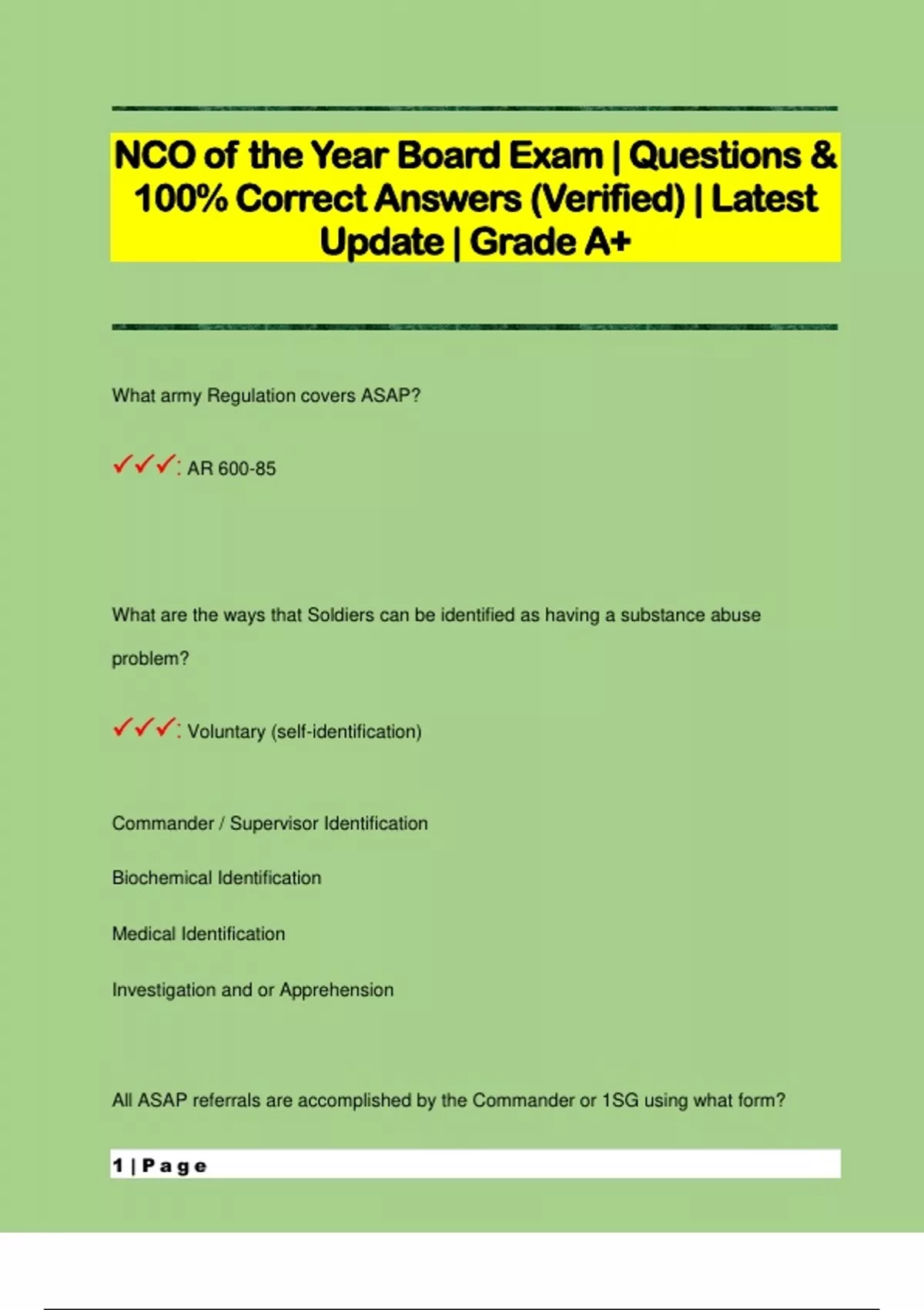 NCO of the Year Board Exam | Questions & 100% Correct Answers (Verified) | Latest Update | Grade A+