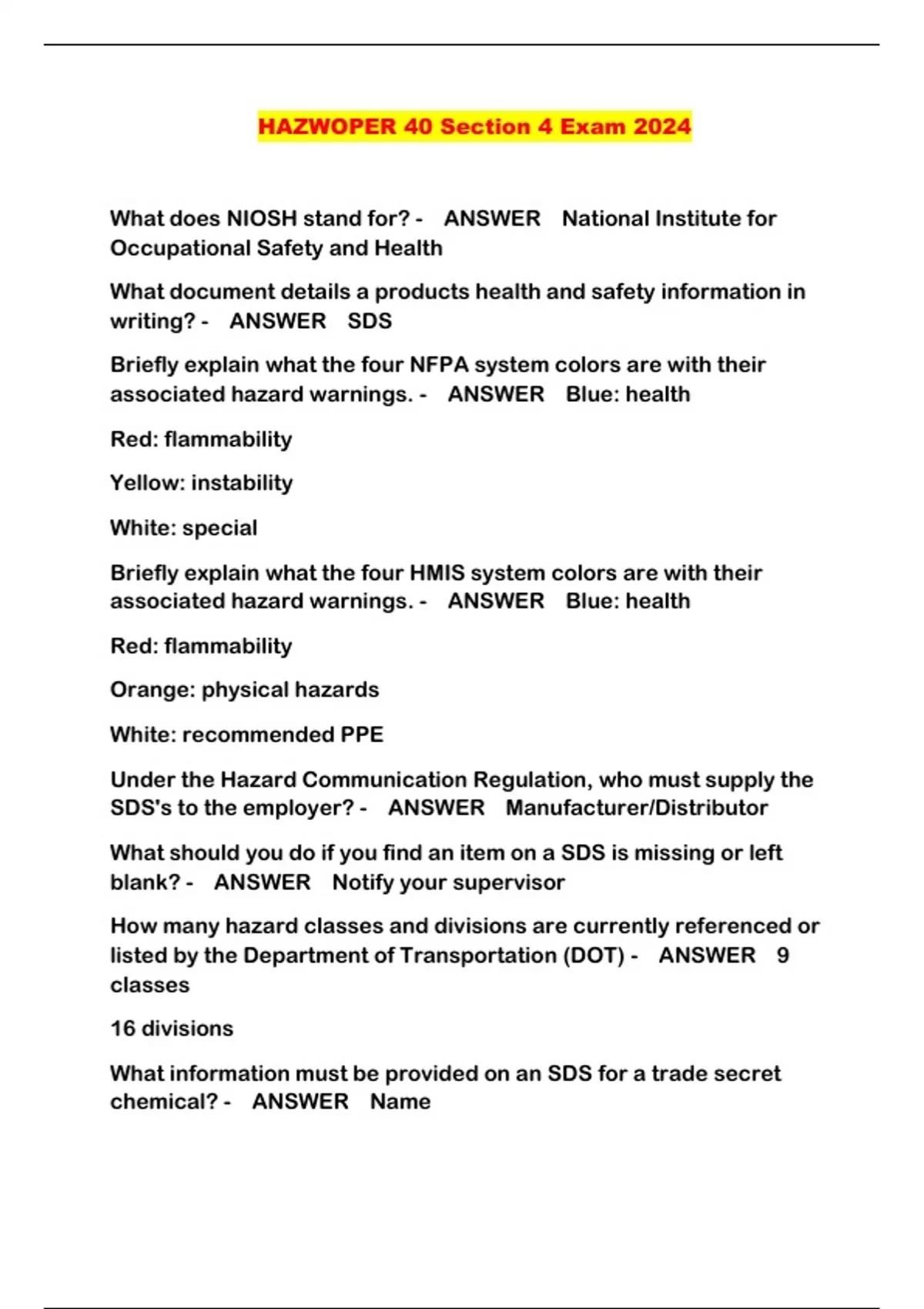 HAZWOPER 40 Section 4 Exam 2024