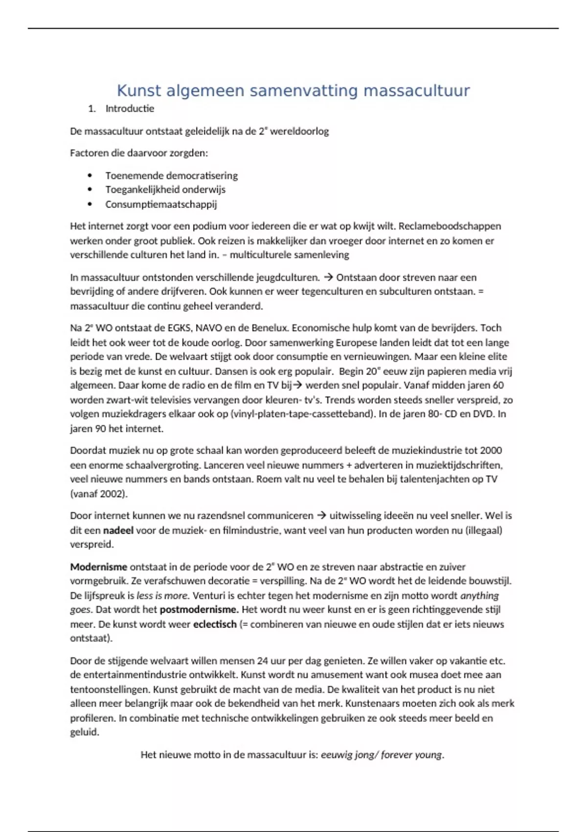 De massacultuur ontstaat geleidelijk na de 2e wereldoorlog