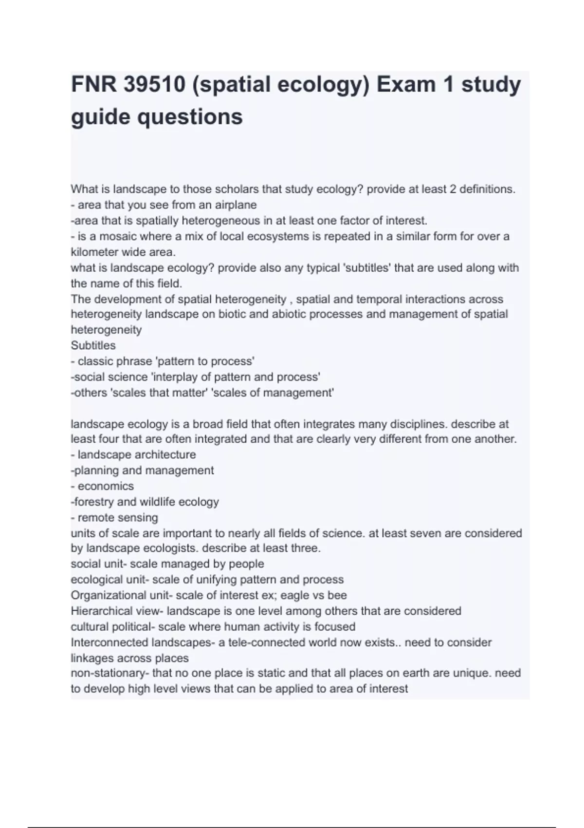 FNR 39510 (spatial ecology) Exam 1 study guide questions with complete solution