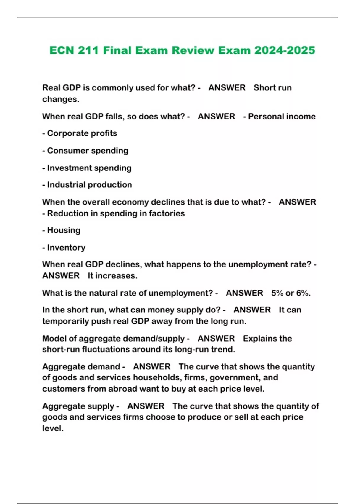 ECN 211 Final Exam Review Exam ...