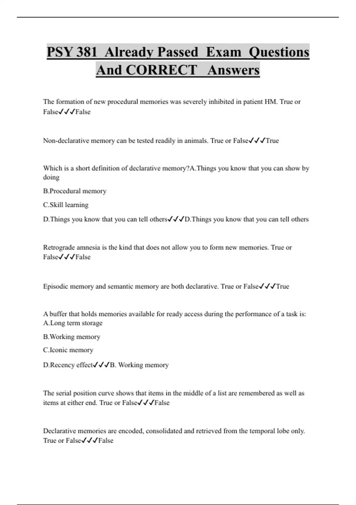 PSY 381 Already Passed Exam Questions And CORRECT Answers