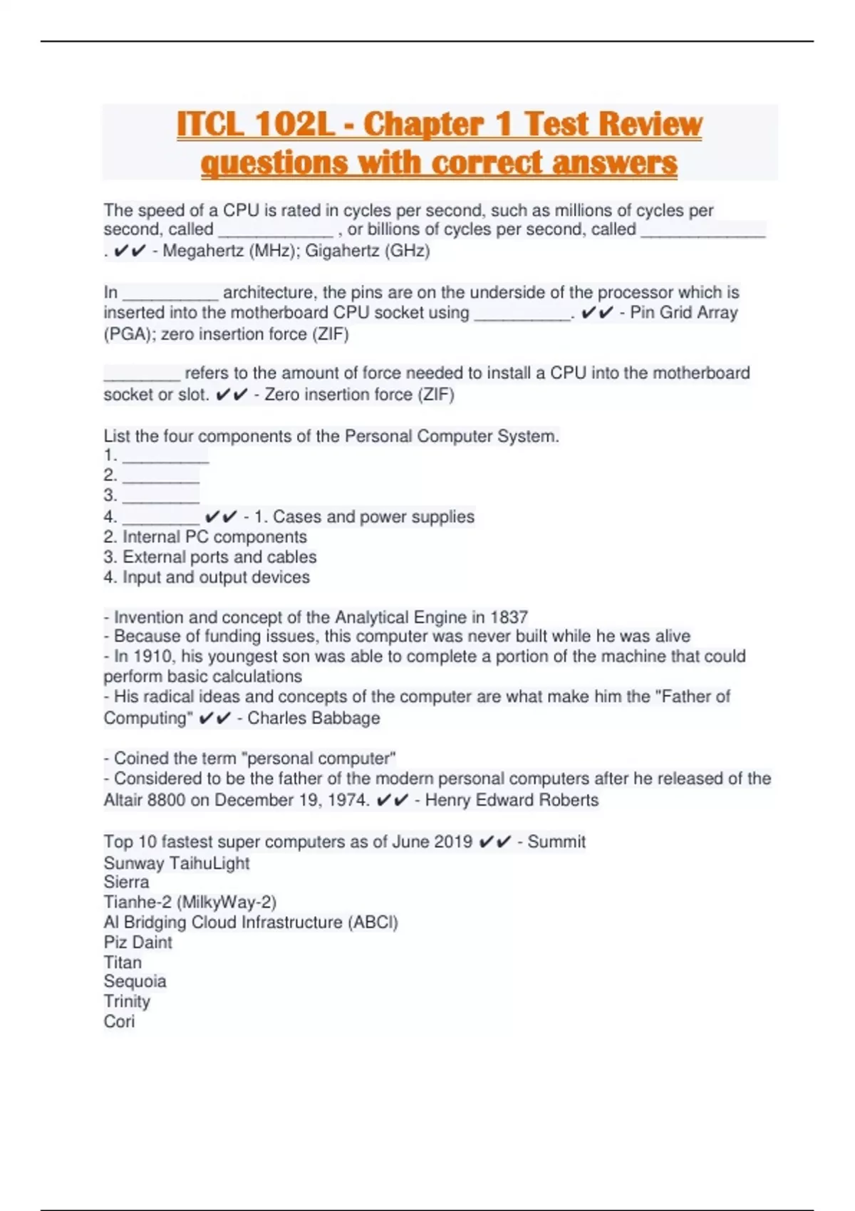 ITCL 102L - Chapter 1 Test Review questions with correct answers