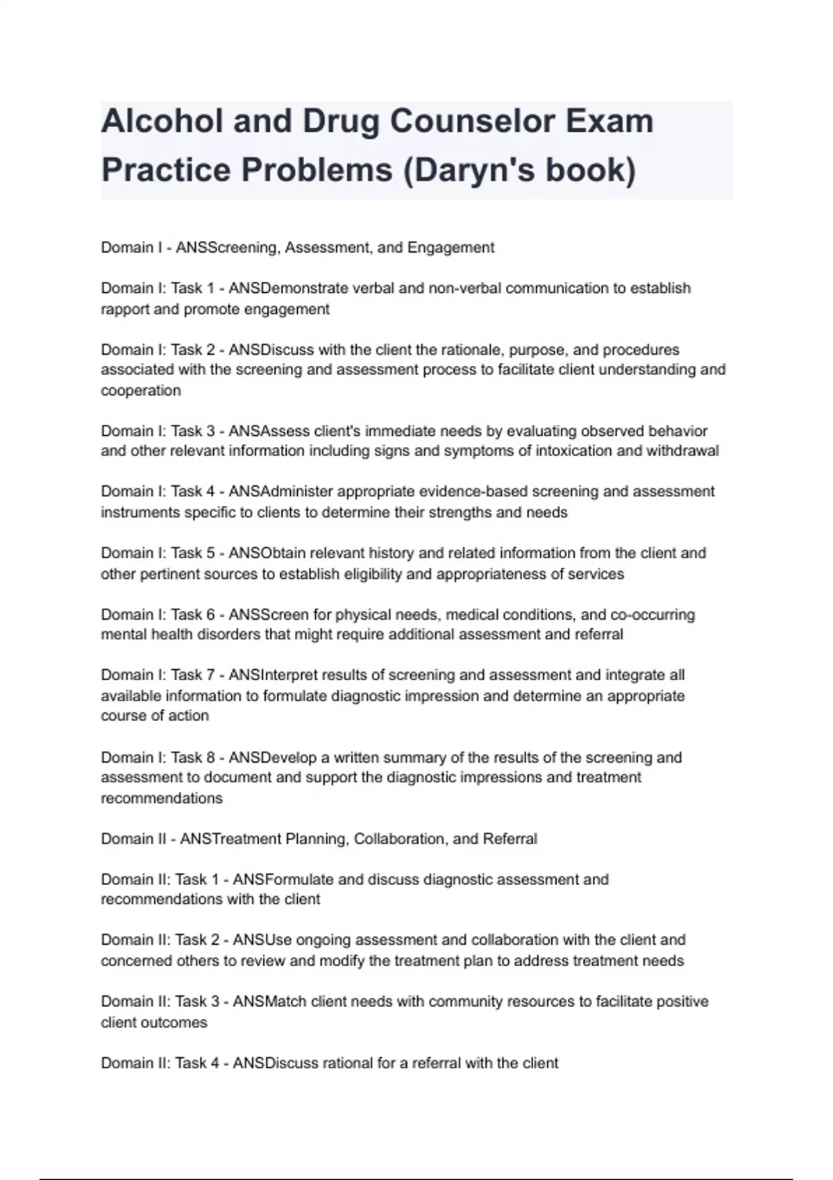 Alcohol and Drug Counselor Exam Practice Problems (Daryn's book) 2024/2025 A+ score assured
