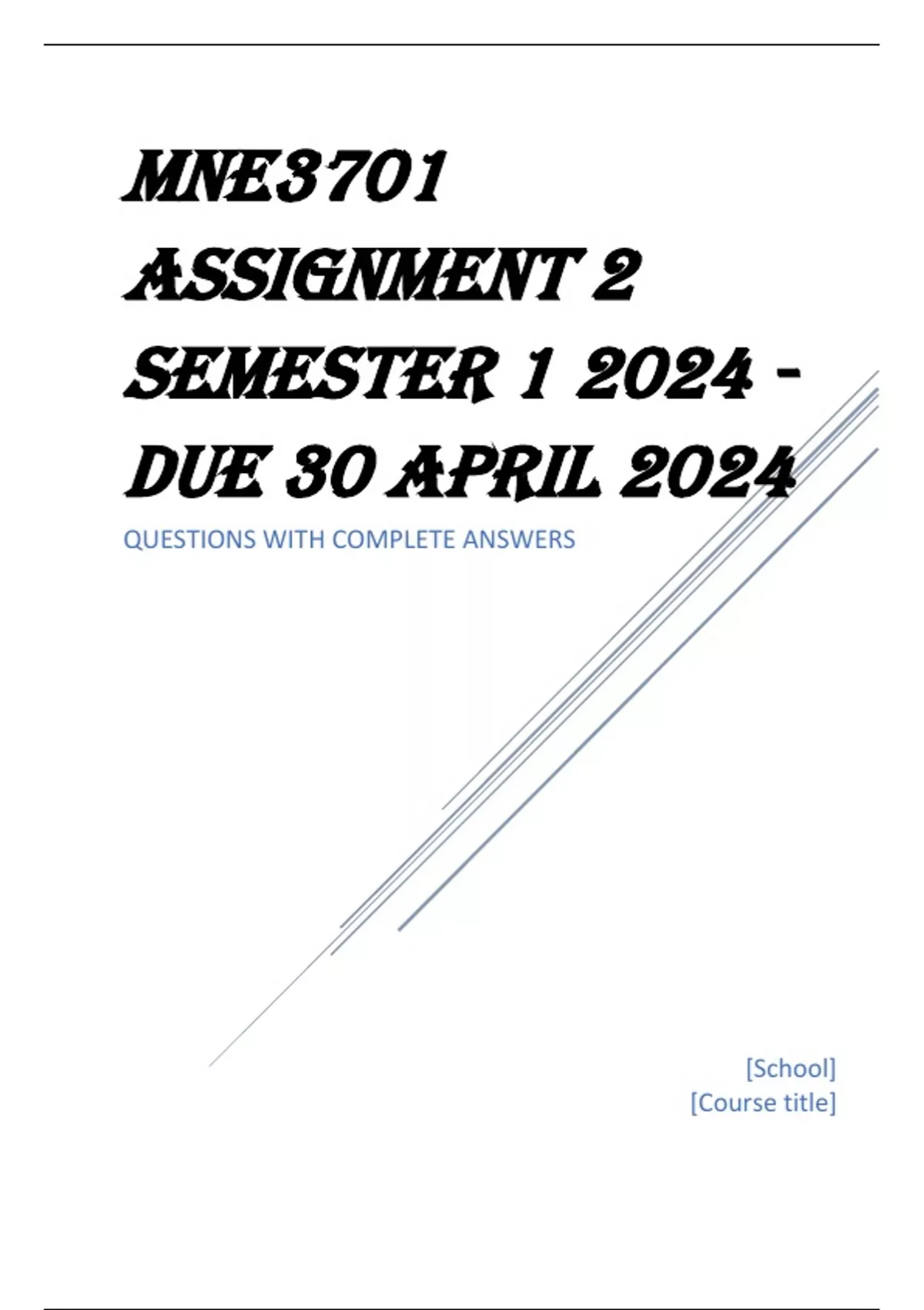 , MNE3701 Assignment 2 Semester 1 2024 - DUE 30 April