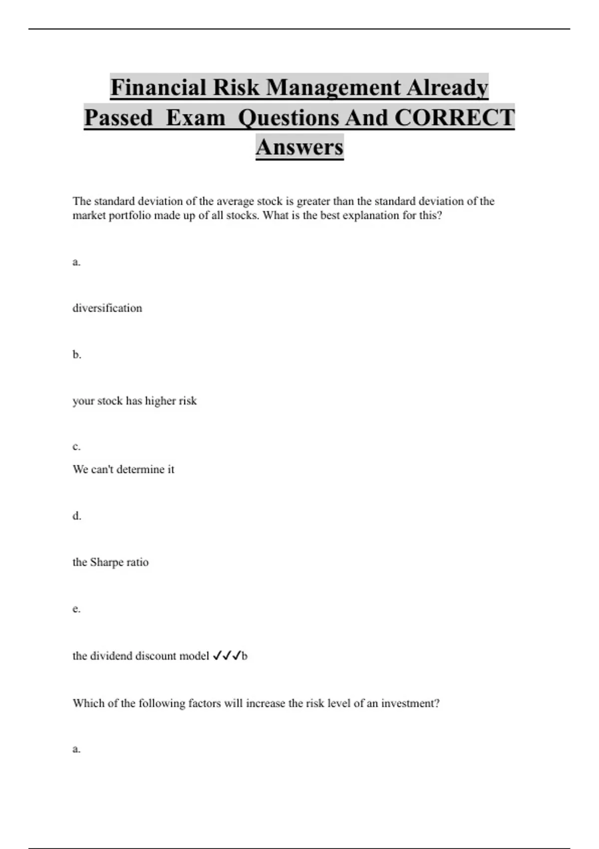 Financial Risk Management Already Passed Exam Questions And CORRECT Answers