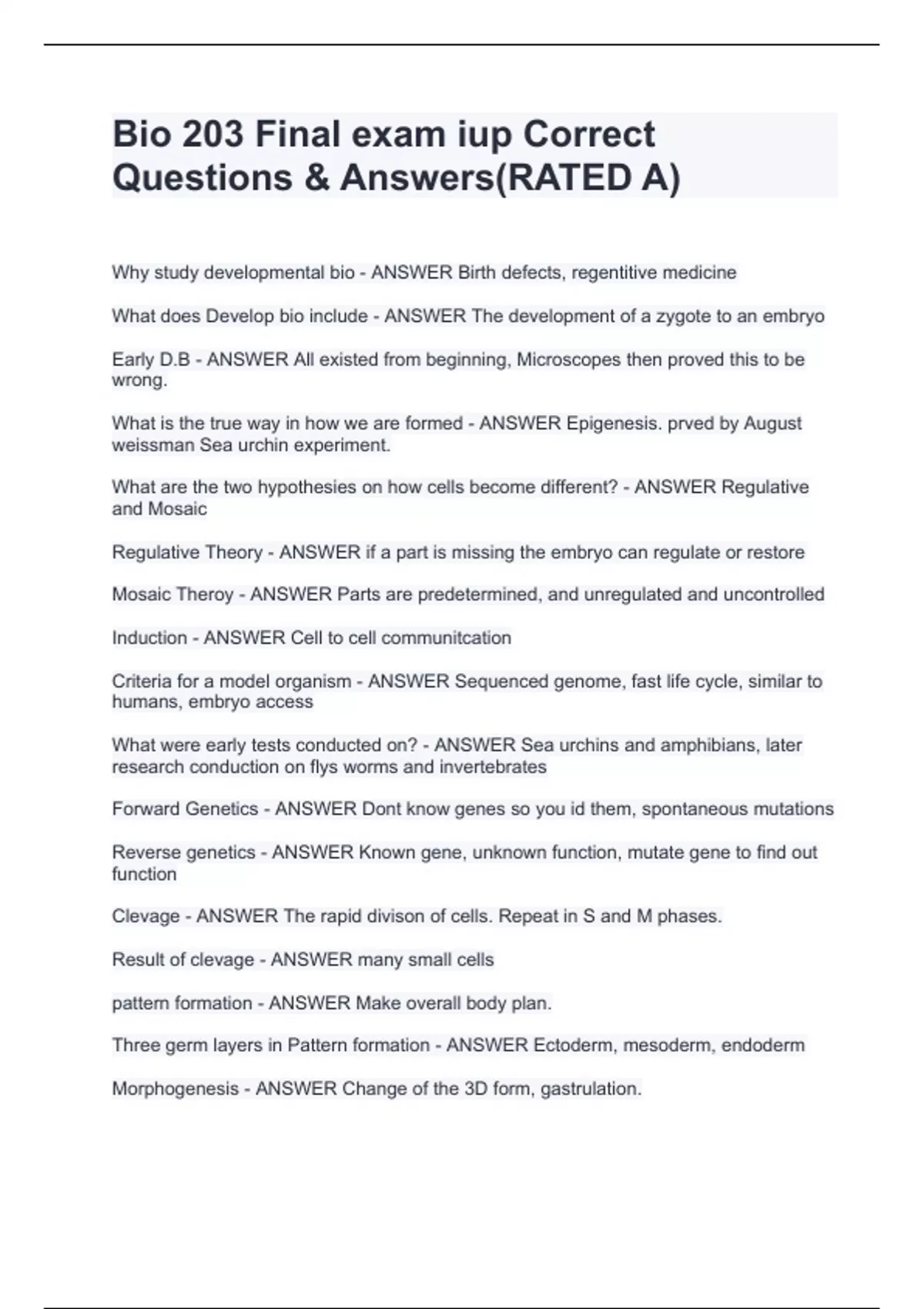 Bio 203 Final exam iup Correct Questions & Answers(RATED A)