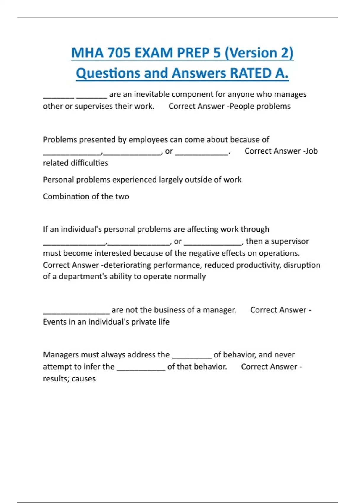 MHA 705 EXAM PREP 5 (Version 2) Questions and Answers RATED A.
