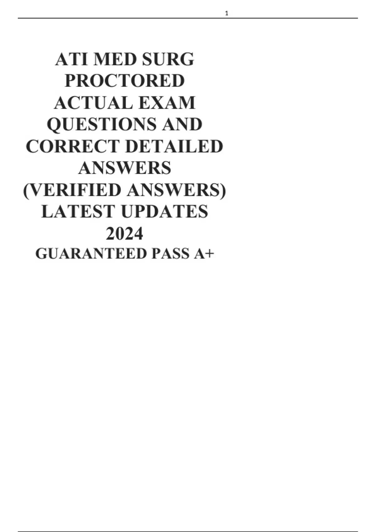 ATI MED SURG PROCTORED ACTUAL EXAM QUESTIONS AND CORRECT DETAILED ANSWERS(VERIFIED ANSWERS) LATEST UPDATES 2024 GUARANTEED PASS A+
