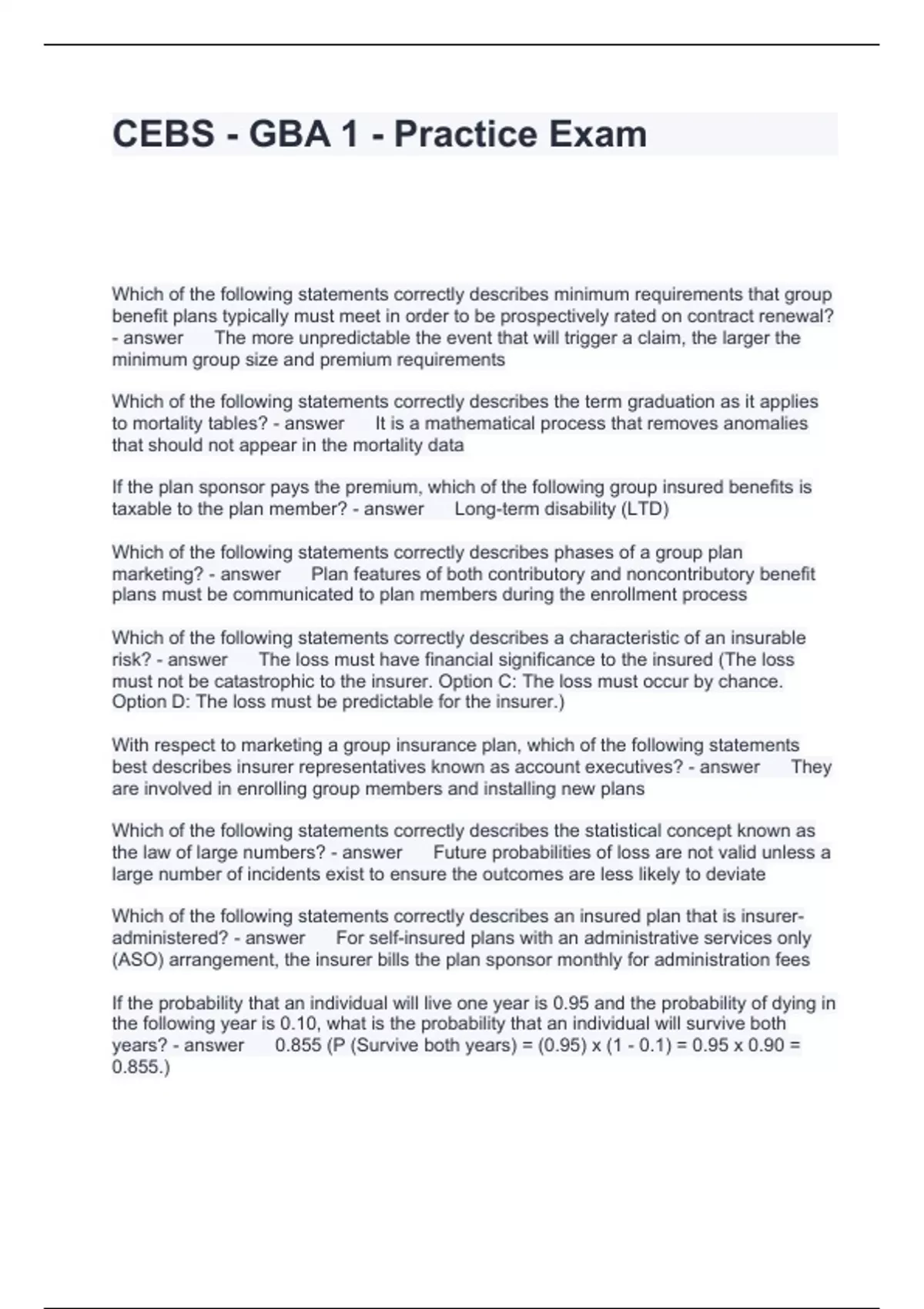 the following year is 0.10, what is the probability that an individual will survive both years? - answer 0.855 (P (Survive both years) = (0.95) x (1 - 0.1) = 0.95 x 0.90 = 0.855.) Which of the following statements correctly describes the group benefits enrollment process for new employees? - answer An employee can enroll in the plan any time between his or her date of hire and the end of a waiting period