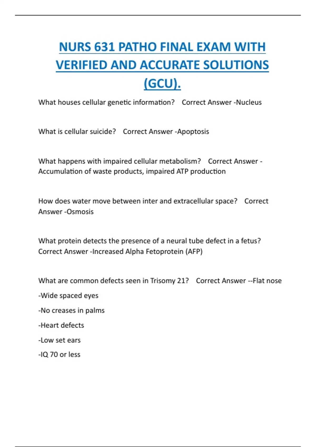 NURS 631 PATHO FINAL EXAM WITH VERIFIED AND ACCURATE SOLUTIONS (GCU).