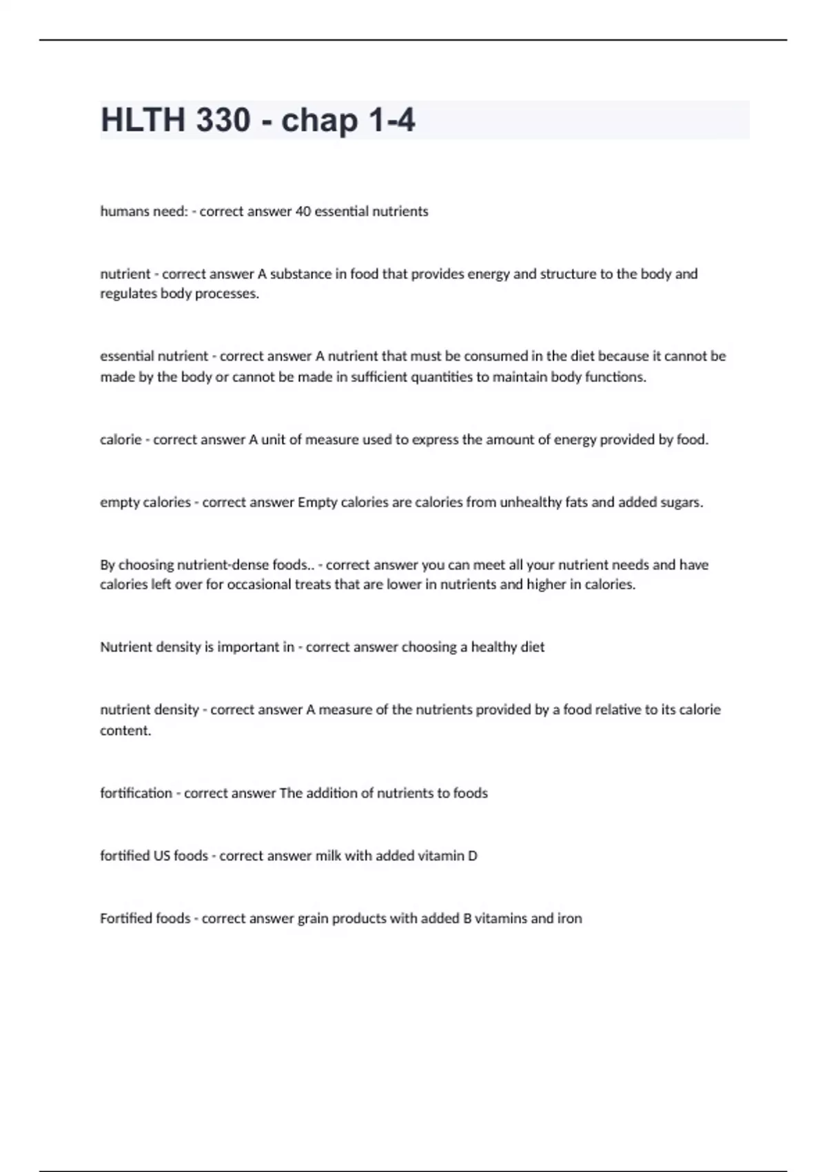 hlth 330 chap 1 4 questions and answers already