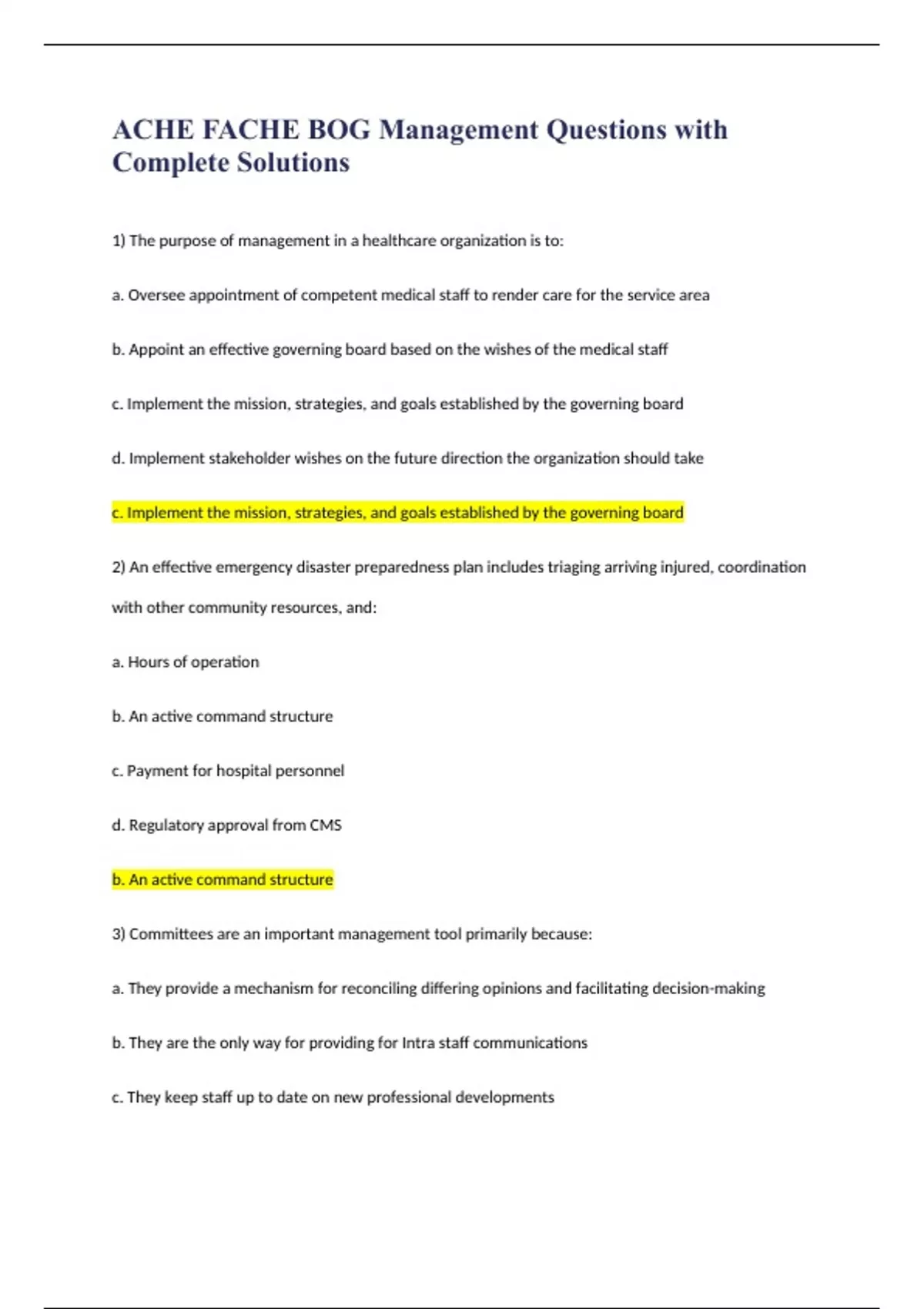 2) An effective emergency disaster preparedness plan includes triaging arriving injured, coordination