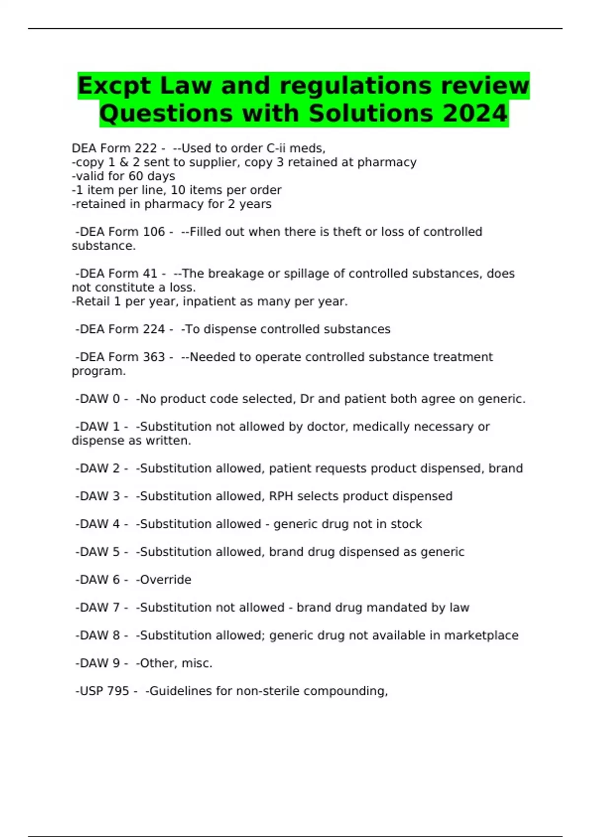 Excpt Law and regulations review Questions with Solutions 2024
