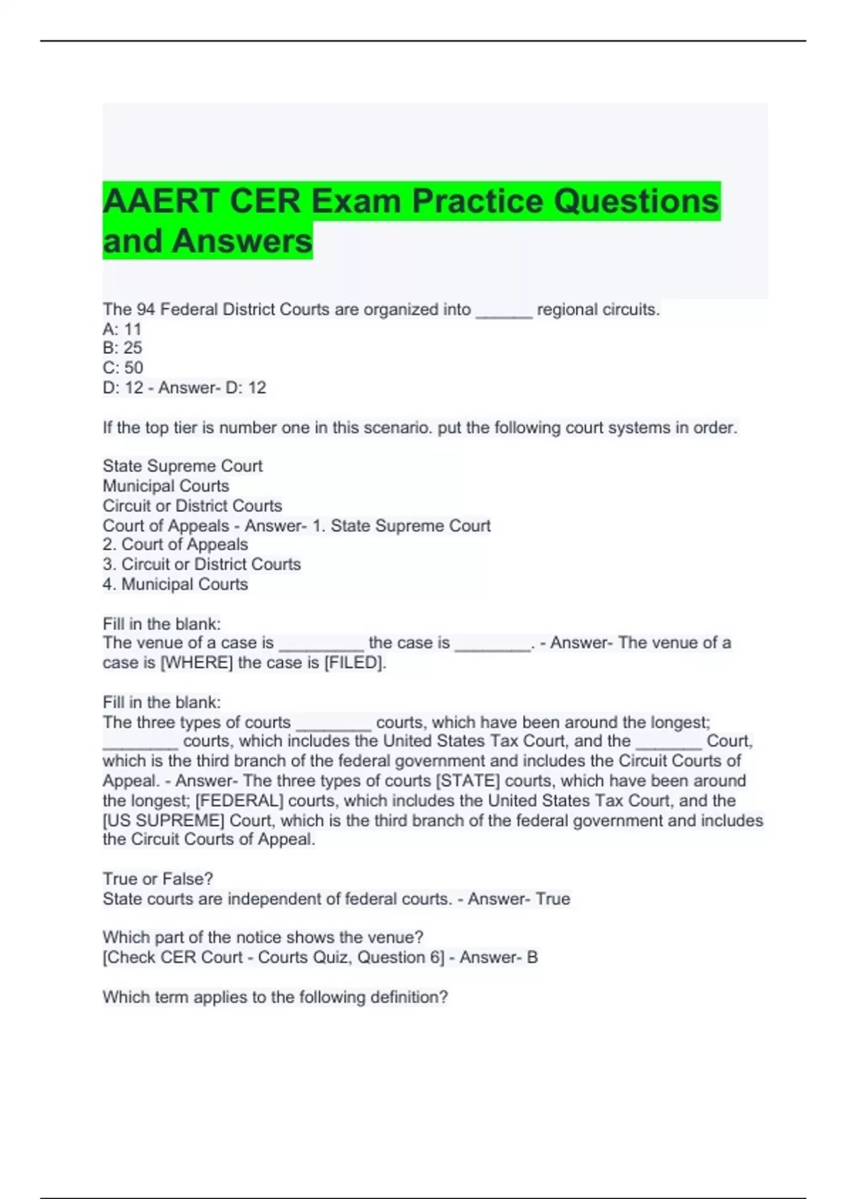 AAERT CER Exam Practice Questions and Answers 2024