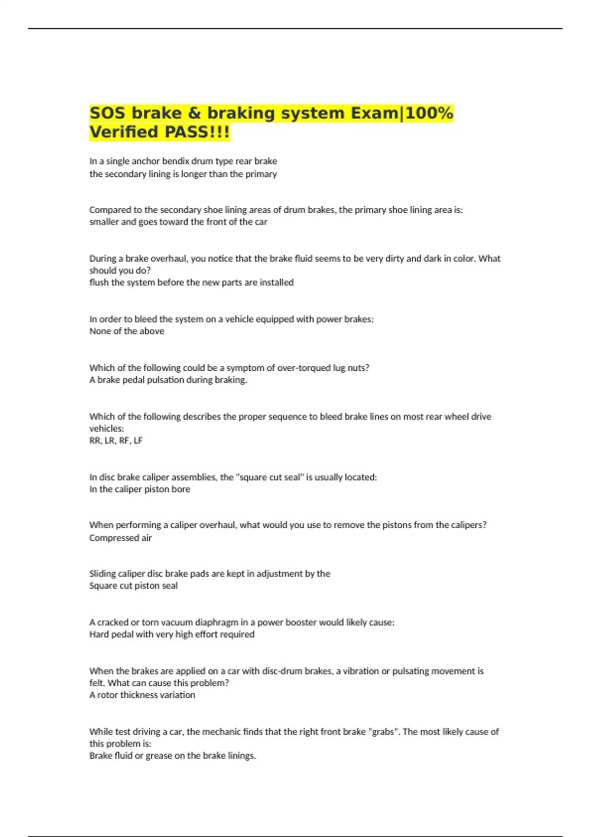 , During a road test, you find that when normal breaking pressure is applied the pedal slowly goes to