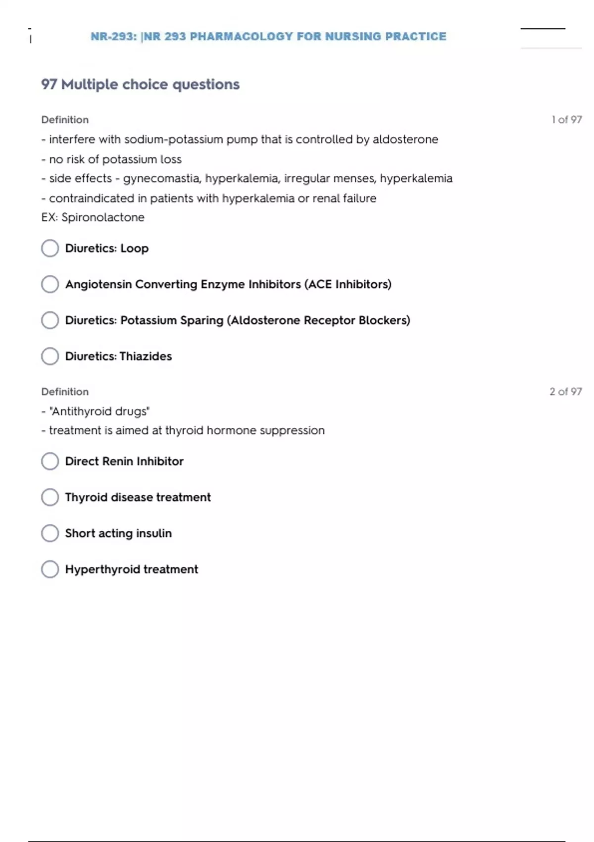 NR-293: |NR 293 PHARMACOLOGY FOR NURSING PRACTICE EXAM 3 GRADED A+
