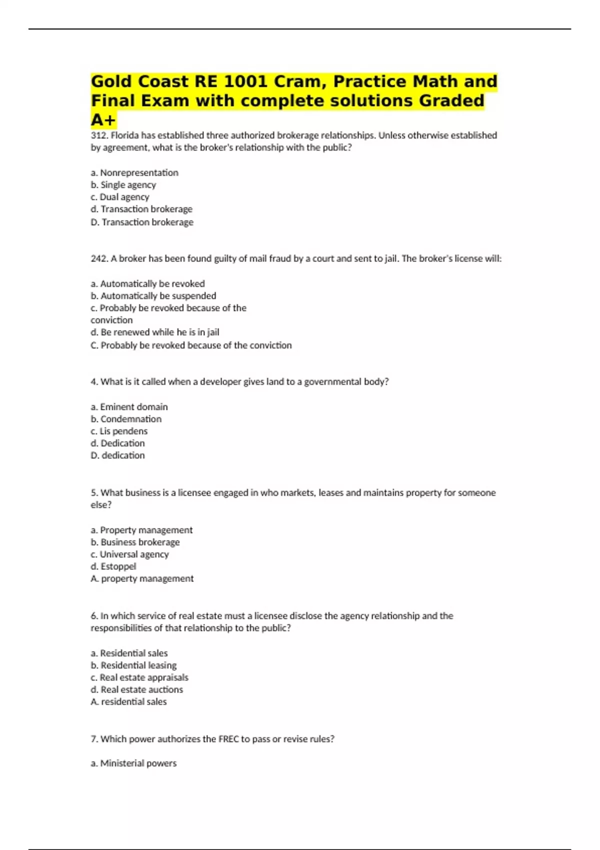 312. Florida has established three authorized brokerage relationships. Unless otherwise established