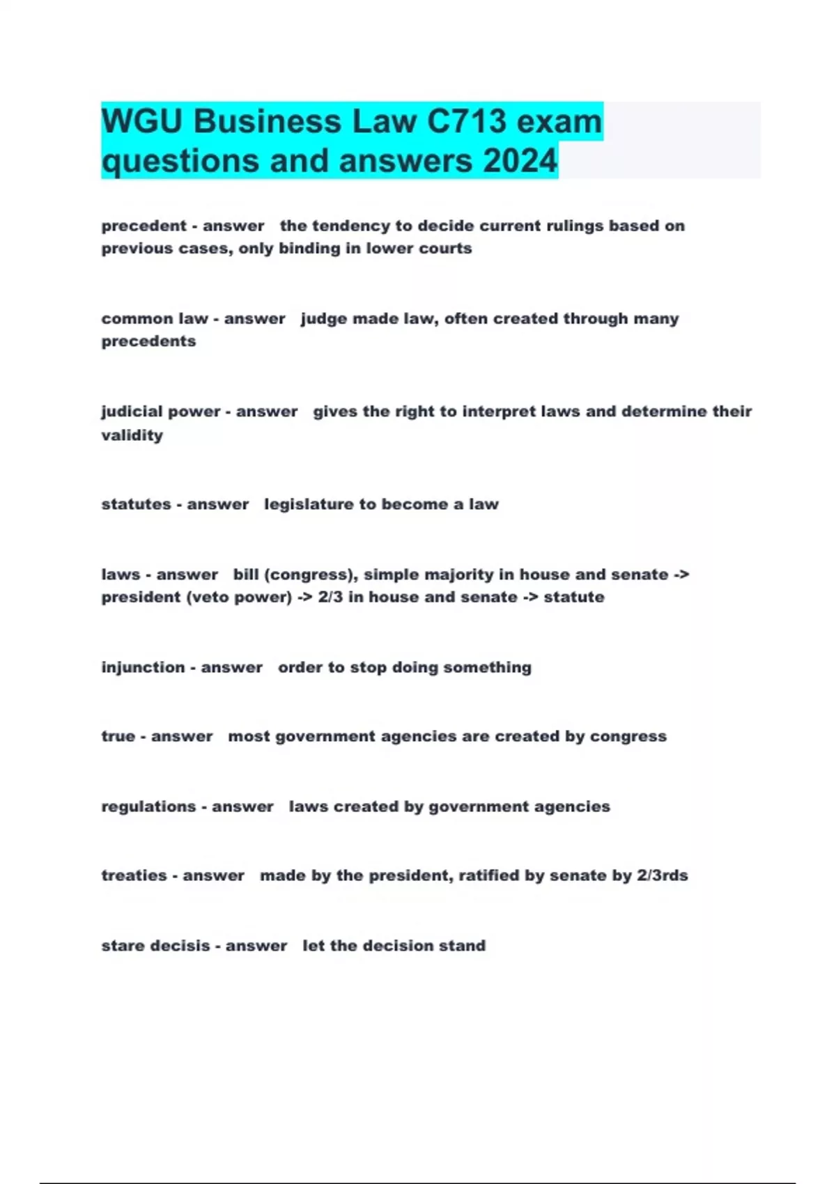 wgu business law c713 exam questions and answers