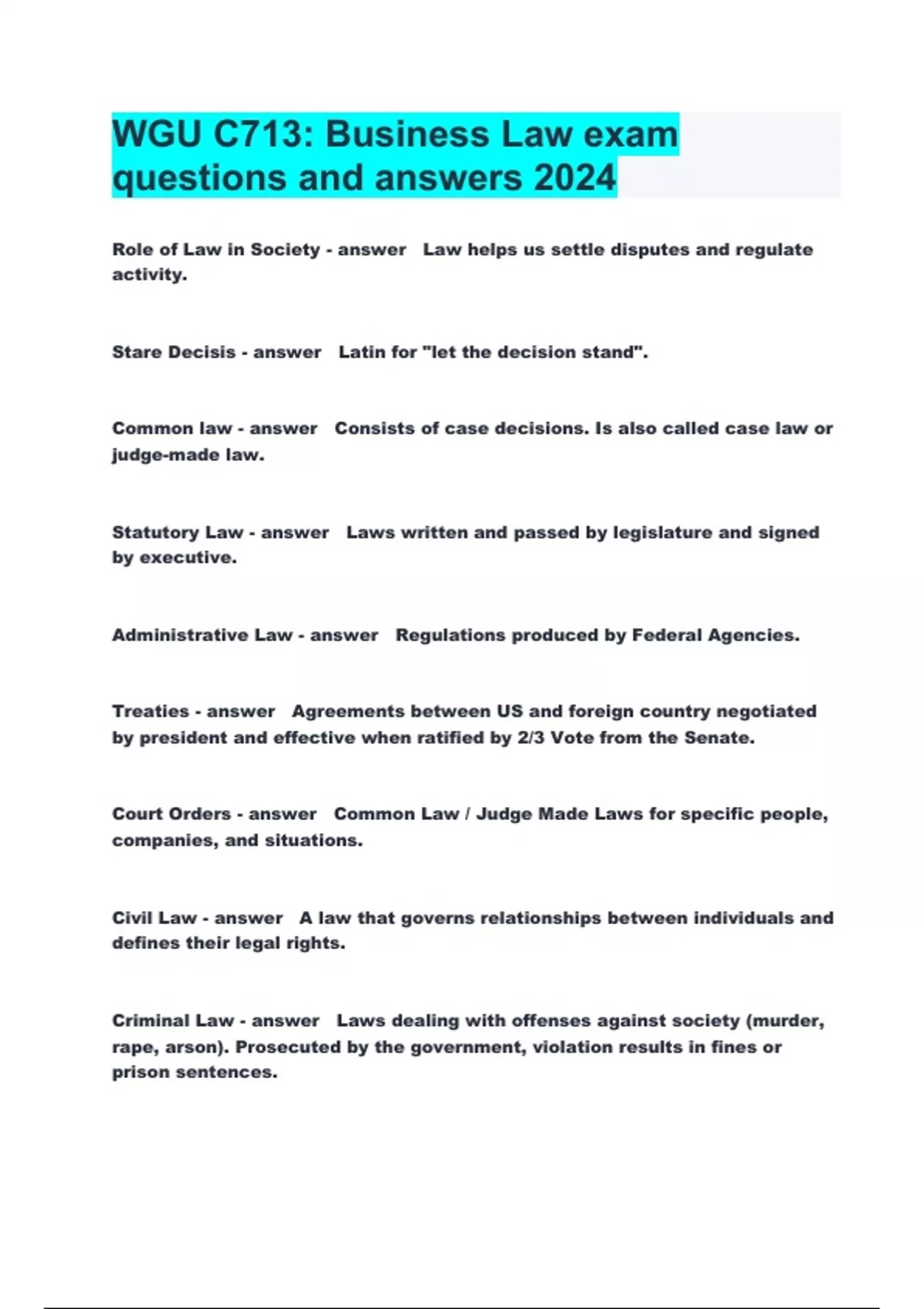 WGU C713: Business Law exam questions and answers 2024