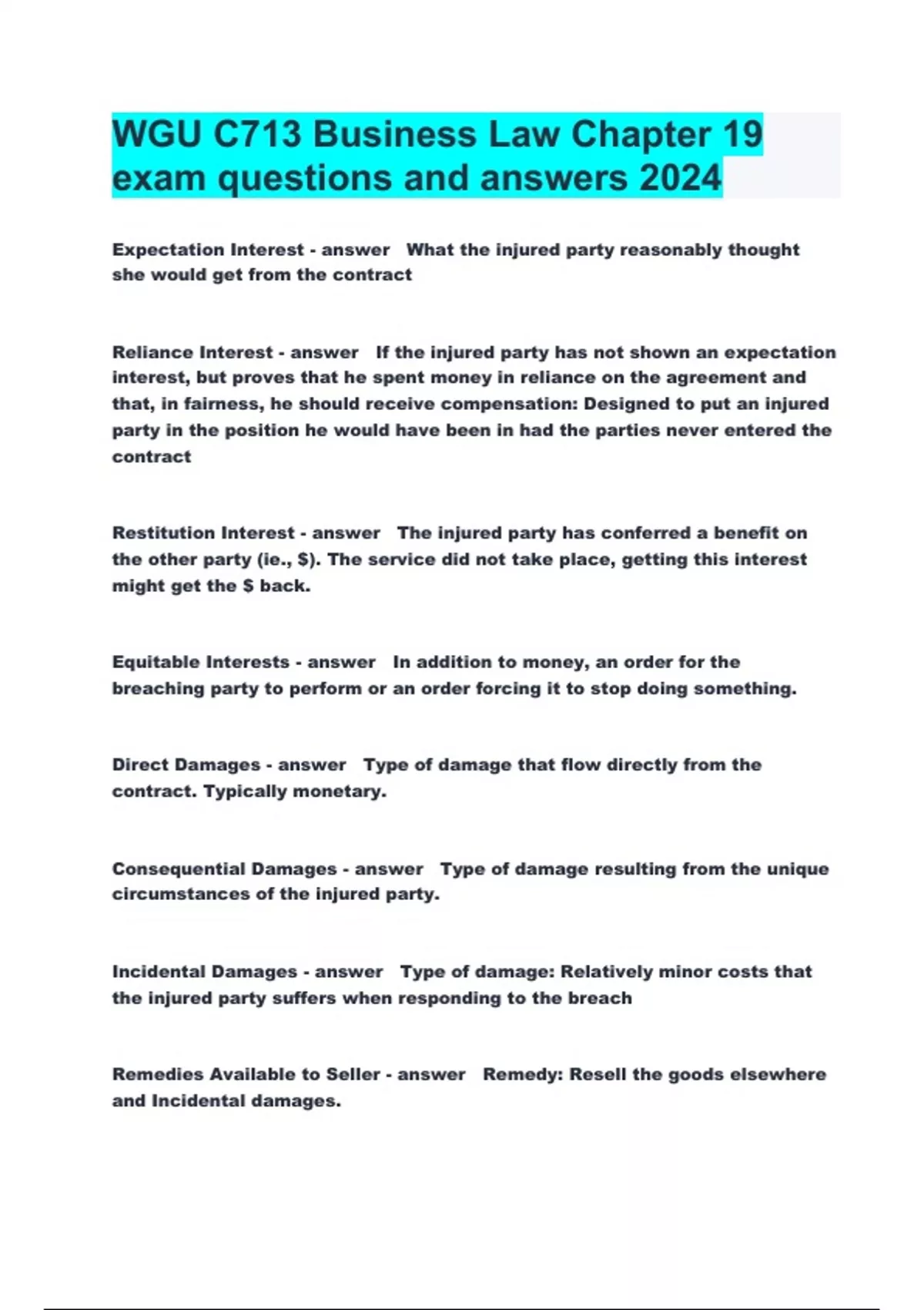 WGU C713 Business Law Chapter 19 exam questions and answers 2024