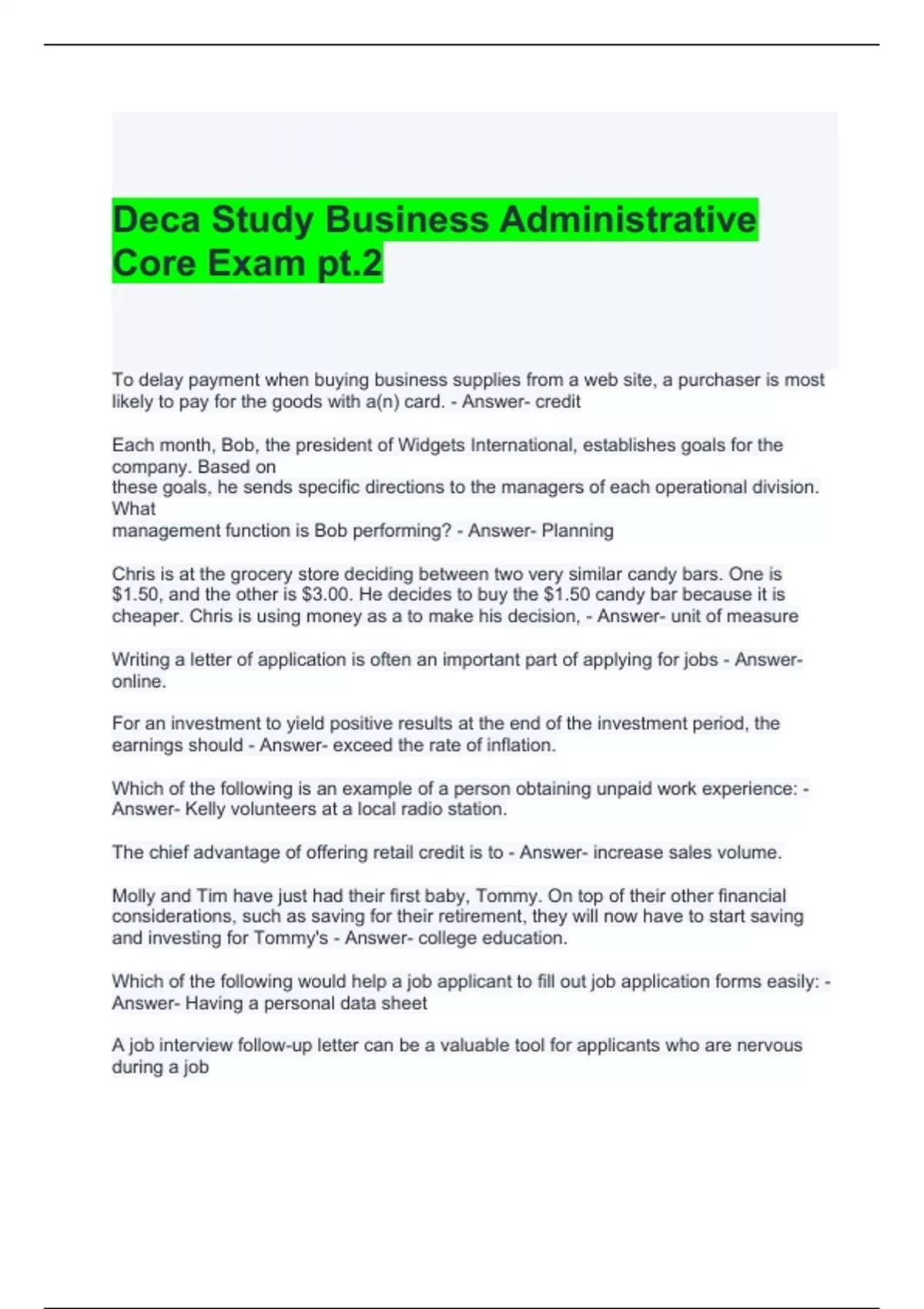 deca study business administrative core exam pt2