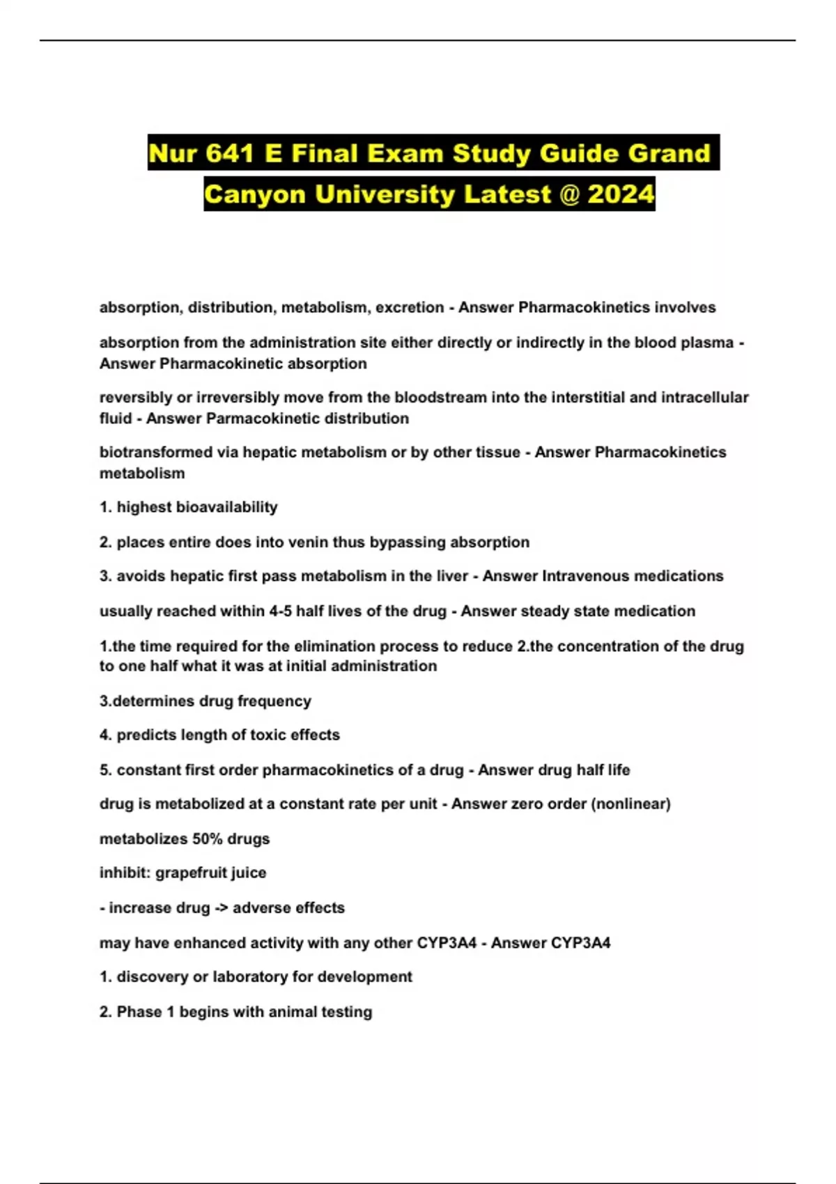 nur 641 e final exam study guide grand canyon