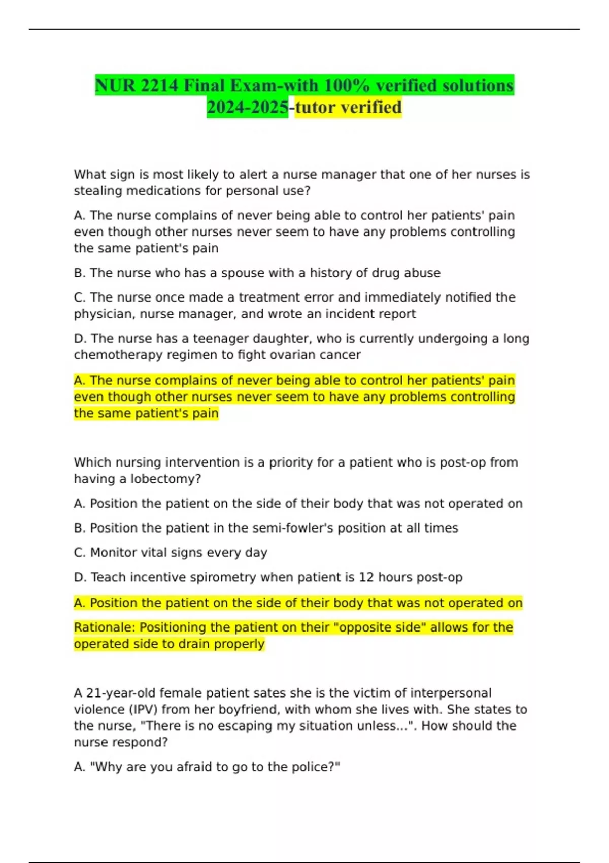 NUR 2214 Final Exam-with 100% verified solutions -tutor verified
