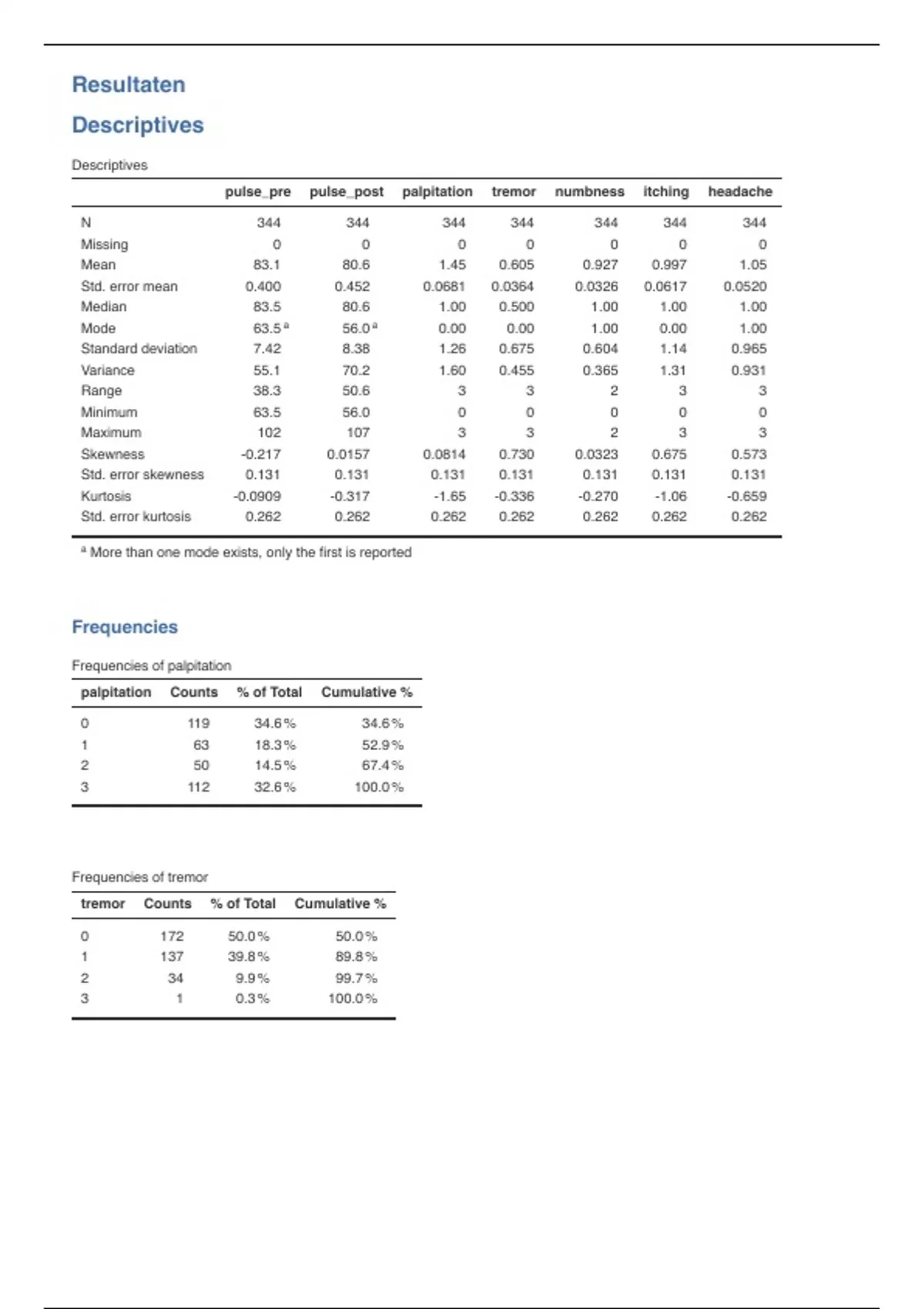 pulse_pre pulse_post palpitation tremor numbness itching headache