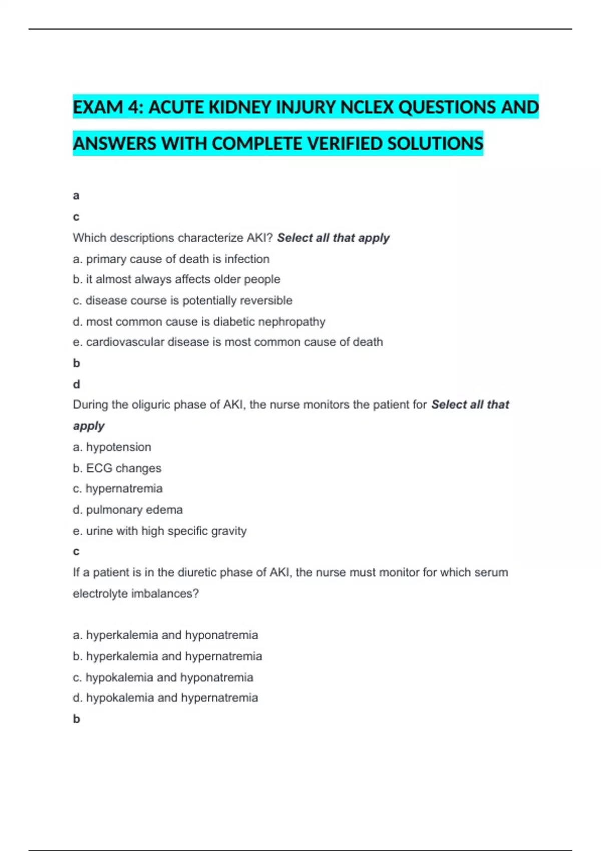 If a patient is in the diuretic phase of AKI, the nurse must monitor for which serum