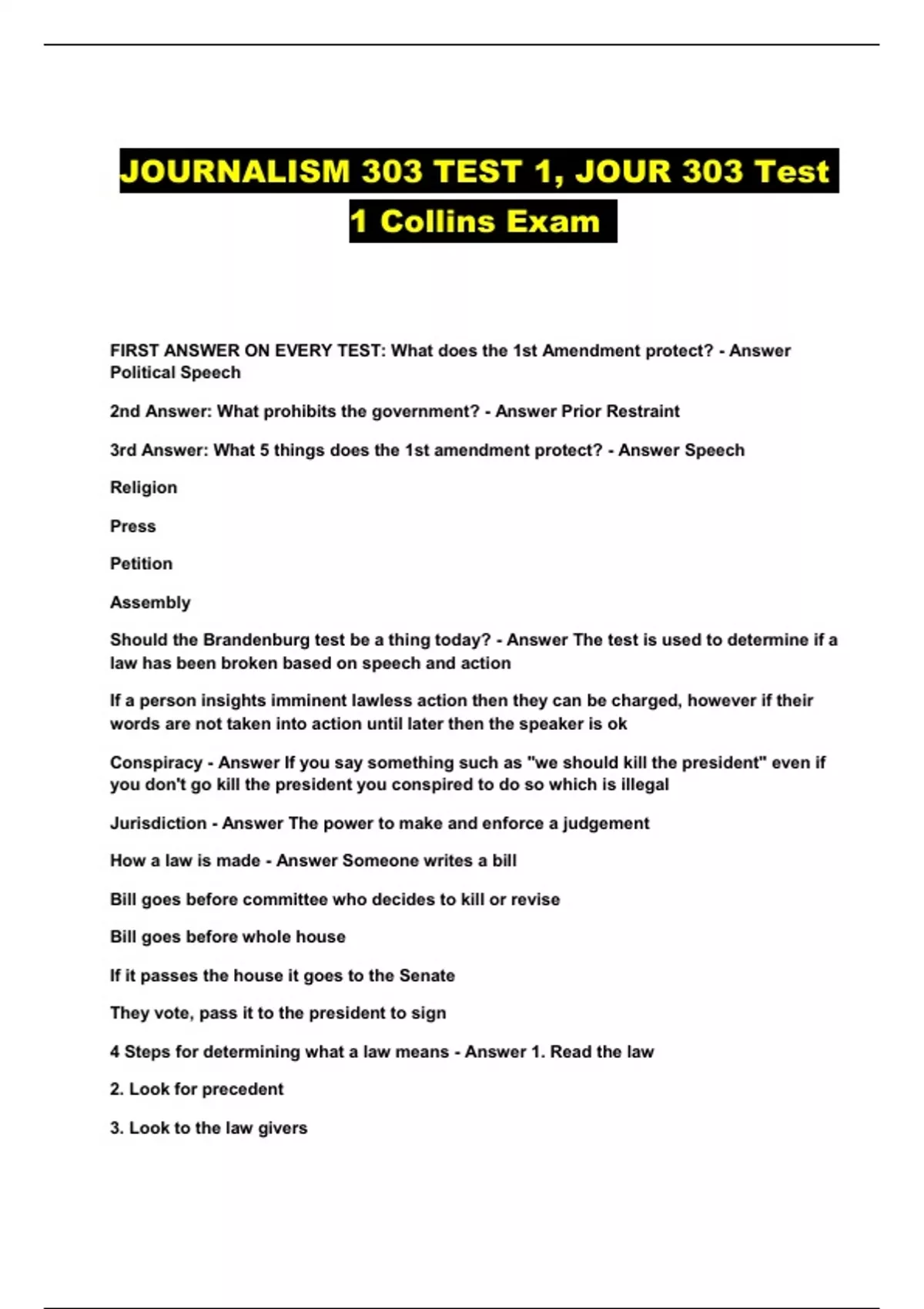 JOURNALISM 303 TEST 1, JOUR 303 Test 1 Collins Exam...