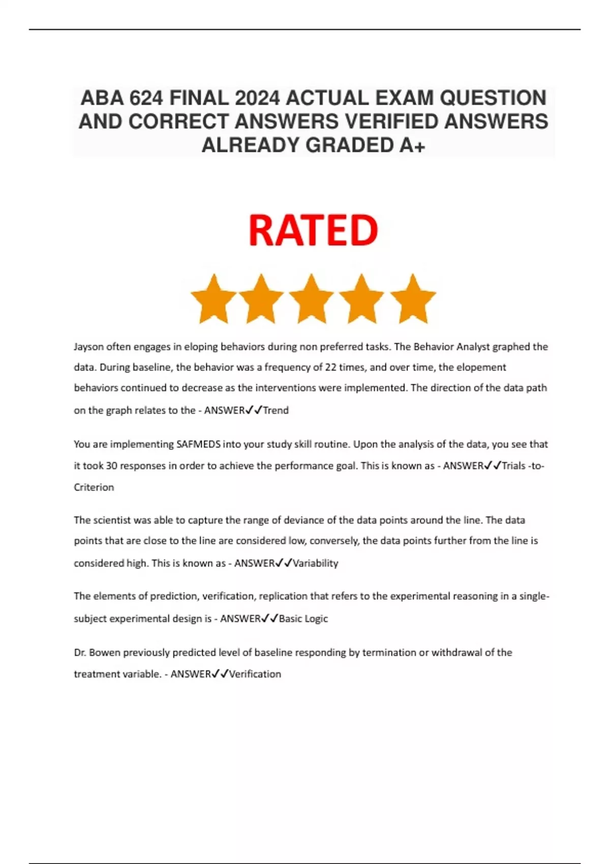 aba 624 final 2024 actual exam question and correc