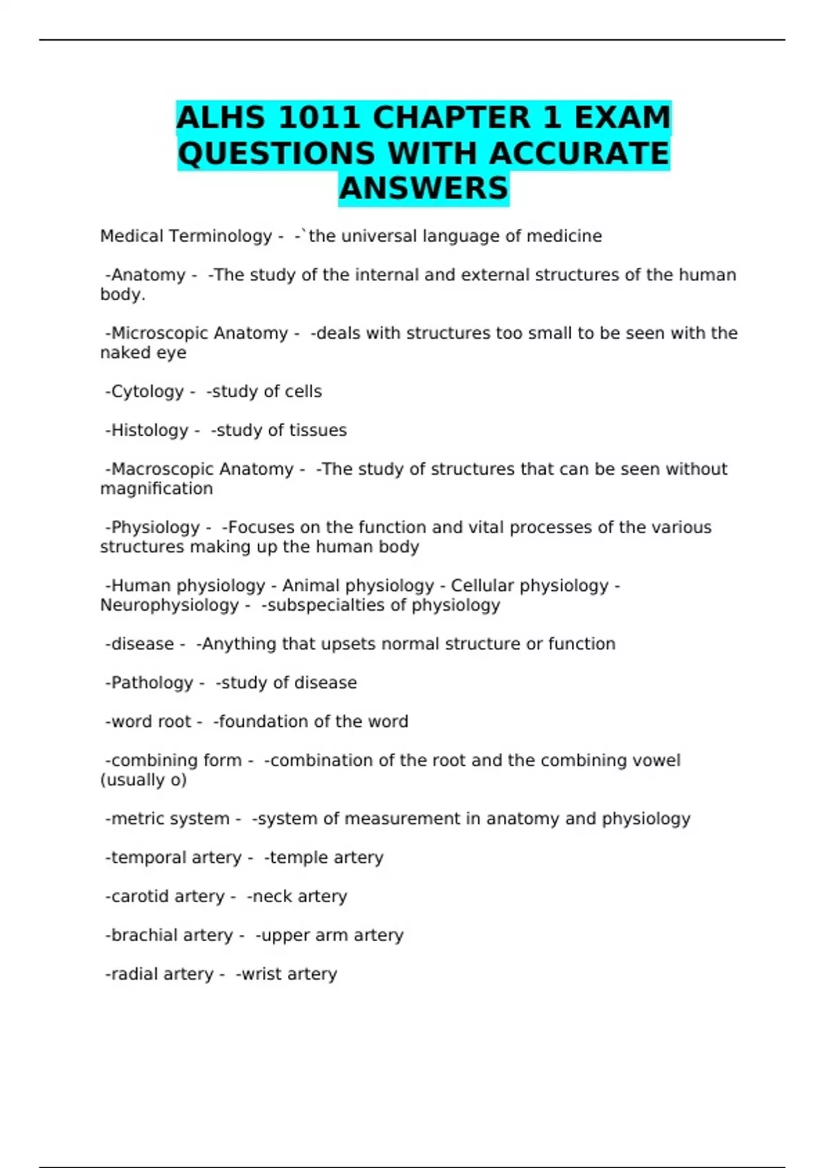 ALHS 1011 CHAPTER 1 EXAM QUESTIONS WITH ACCURATE ANSWERS