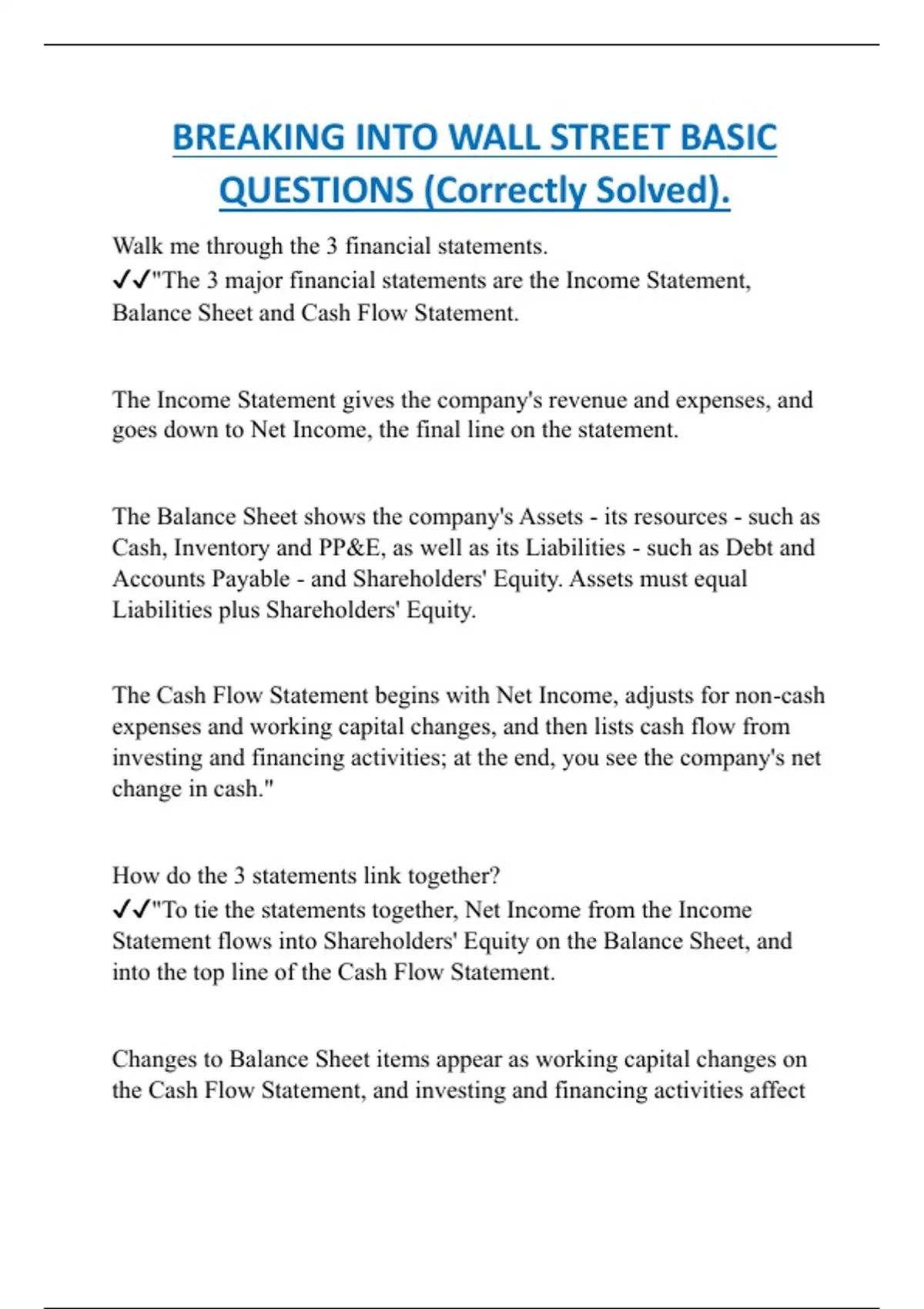 BREAKING INTO WALL STREET BASIC QUESTIONS (Correctly Solved).