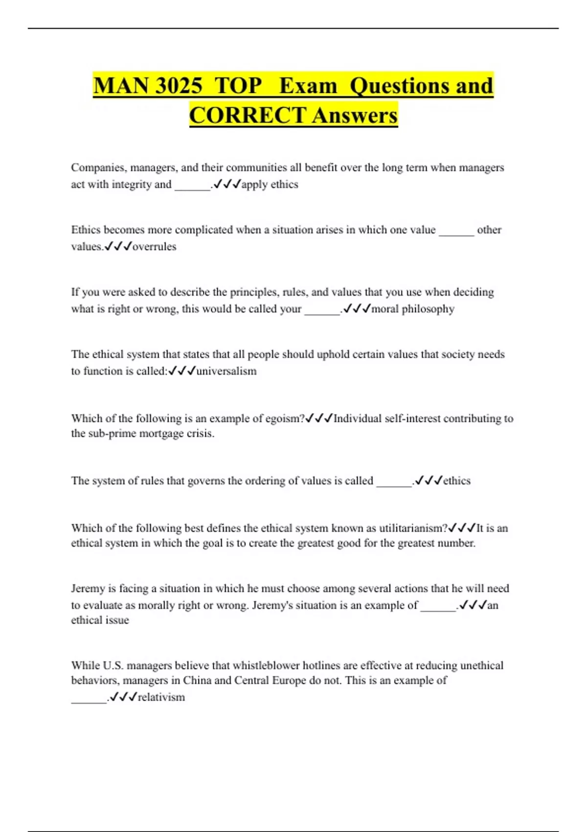 MAN 3025 TOP Exam Questions and CORRECT Answers