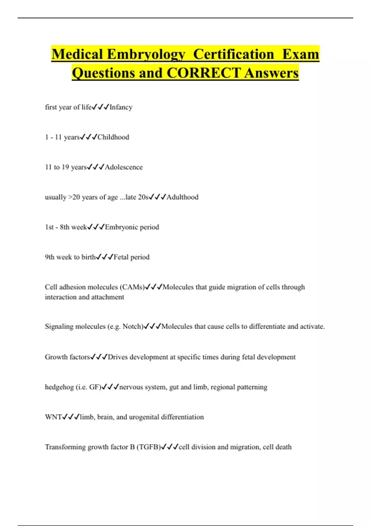 Medical Embryology Certification Exam Questions and CORRECT Answers