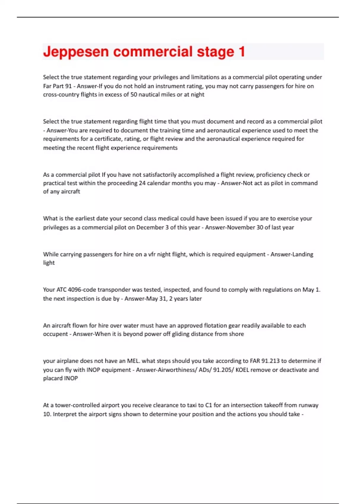 Jeppesen commercial stage 1 Questions And Answers 2024