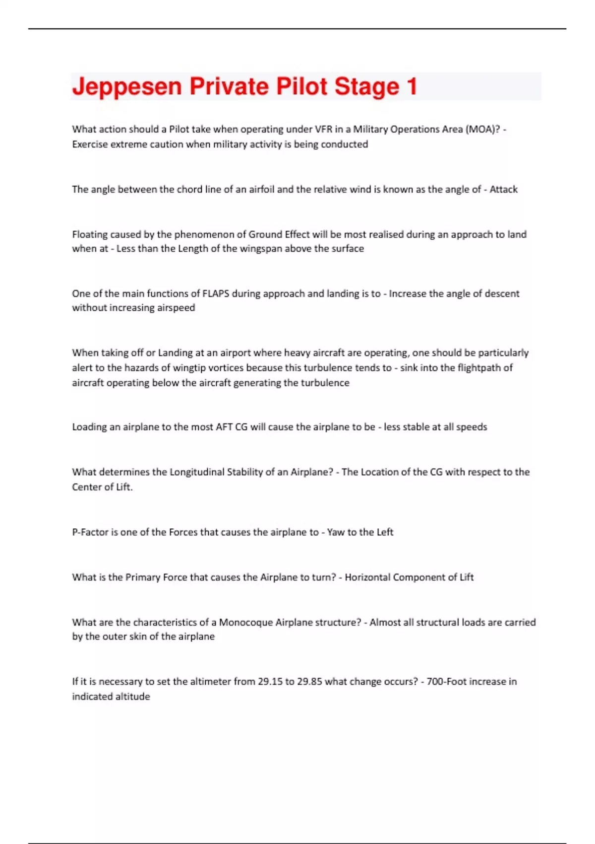 Jeppesen Private Pilot Stage 1 Questions & Answers Already Passed!!