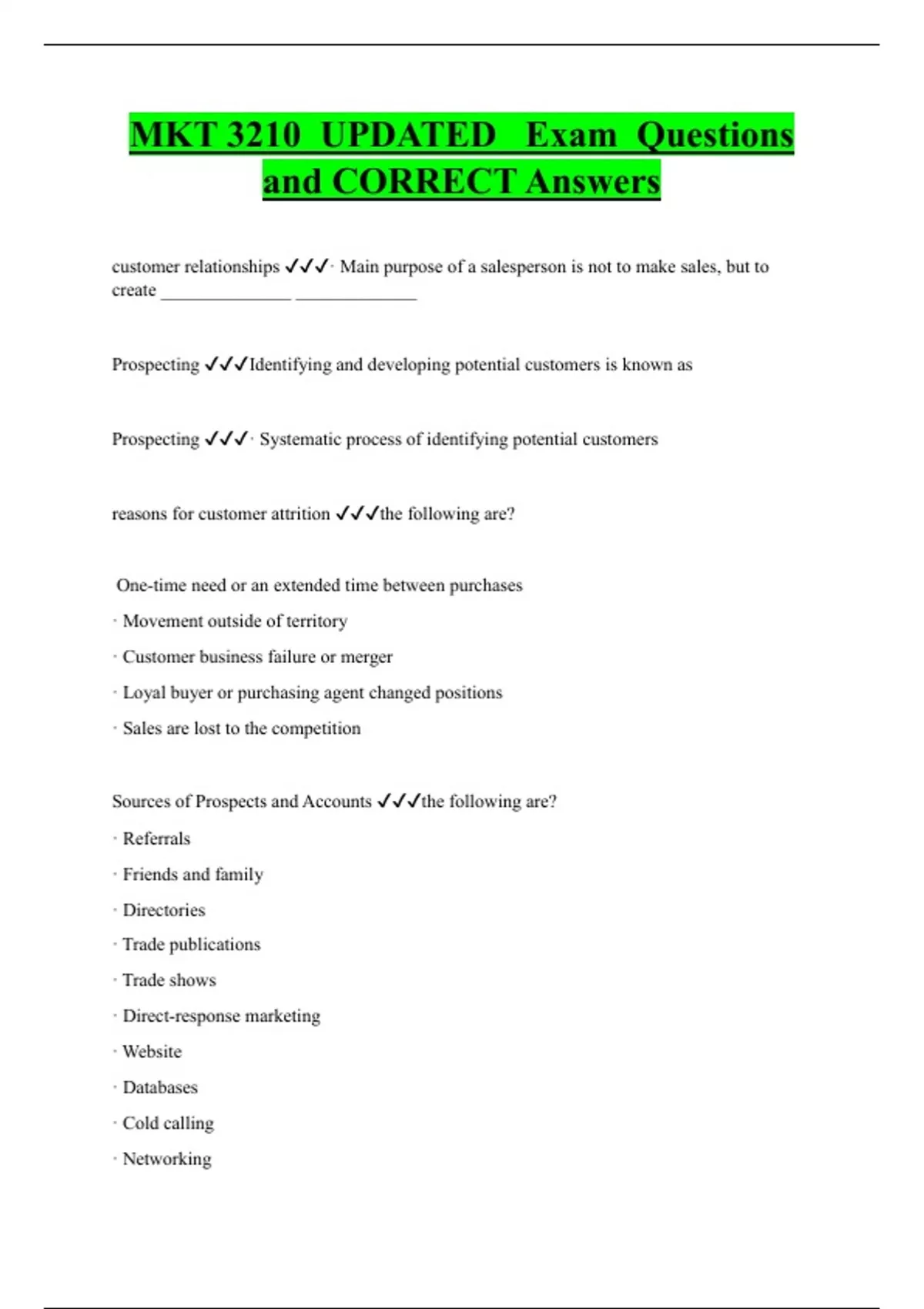 MKT 3210 UPDATED Exam Questions and CORRECT Answers