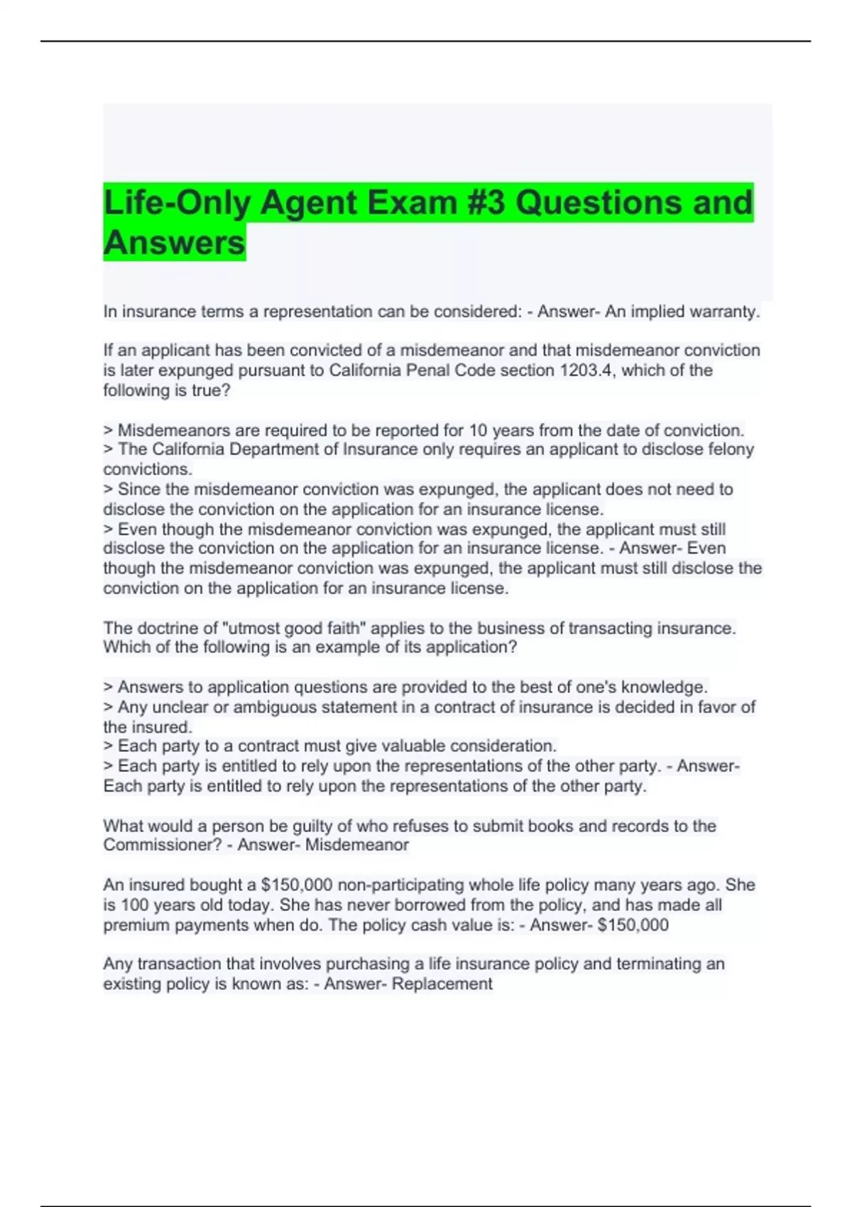 Life-Only Agent Exam #3 Questions and Answers 2024 - Graded A