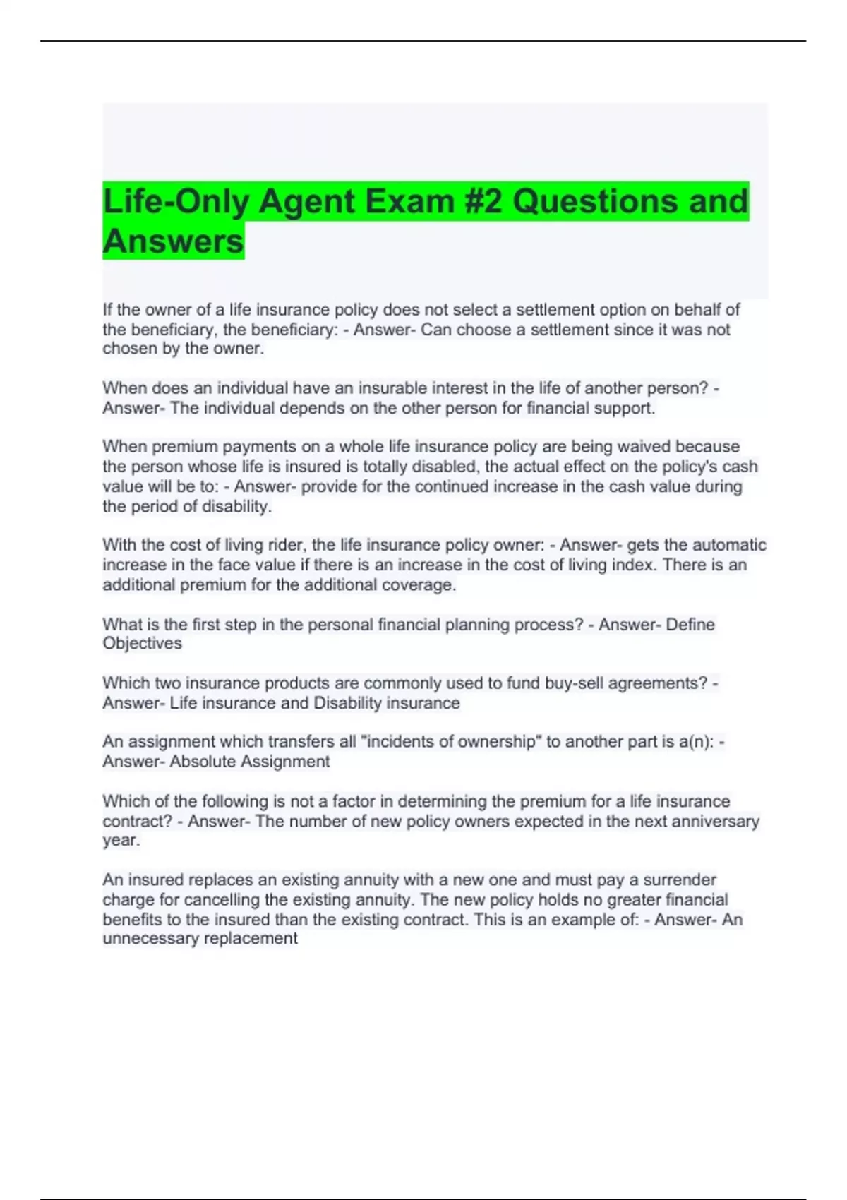 Life-Only Agent Exam #2 Questions and Answers 100% correct
