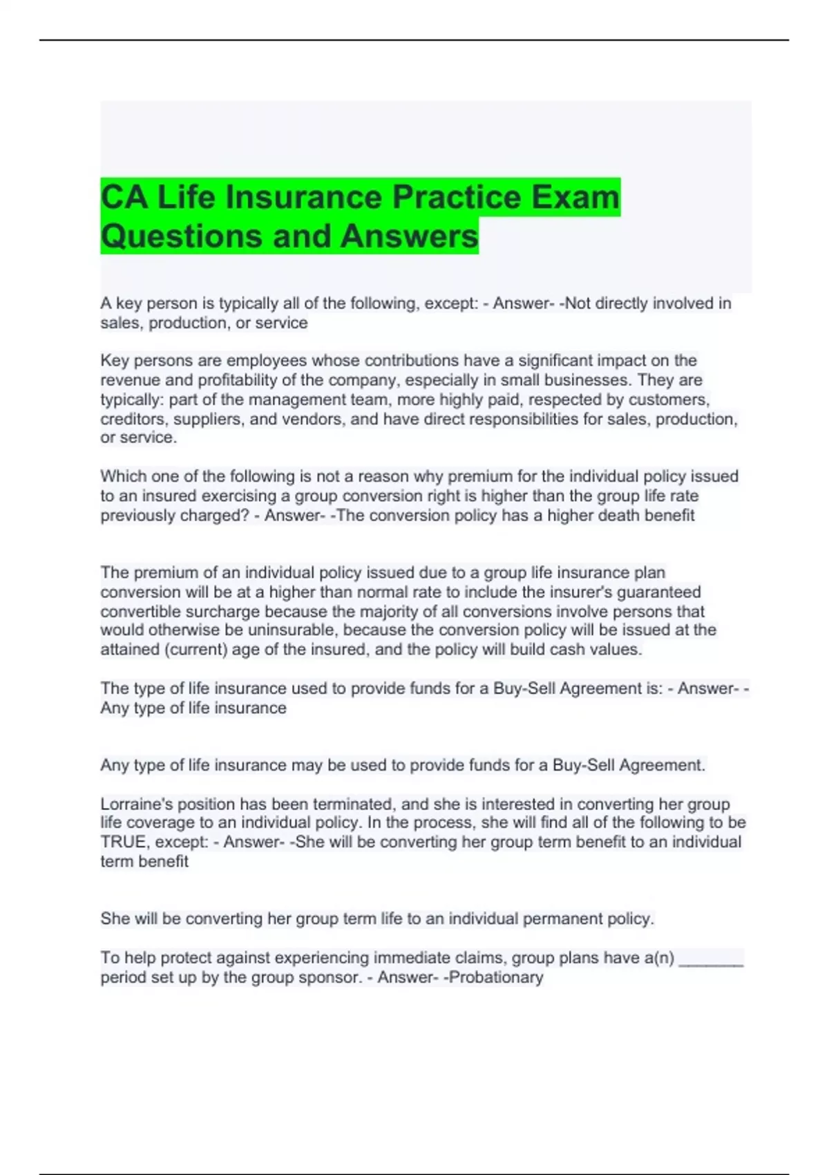 CA Life Insurance Practice Exam Questions and Answers 100% correct