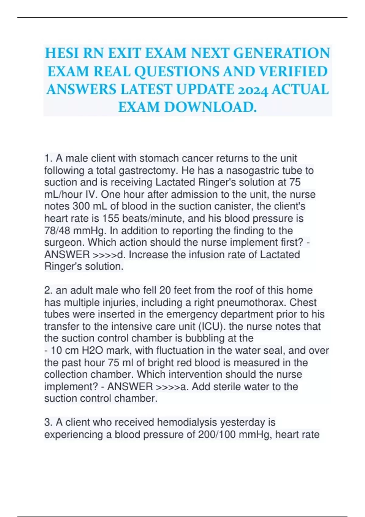 HESI RN EXIT EXAM NEXT GENERATION EXAM REAL QUESTIONS AND VERIFIED ANSWERS LATEST UPDATE 2024 ACTUAL EXAM DOWNLOAD.HESI RN EXIT EXAM NEXT GENERATION EXAM REAL QUESTIONS AND VERIFIED ANSWERS LATEST UPDATE 2024 ACTUAL EXAM DOWNLOAD.HESI RN EXIT EXAM NEXT GENERATION EXAM REAL QUESTIONS AND VERIFIED ANSWERS LATEST UPDATE 2024 ACTUAL EXAM DOWNLOAD.