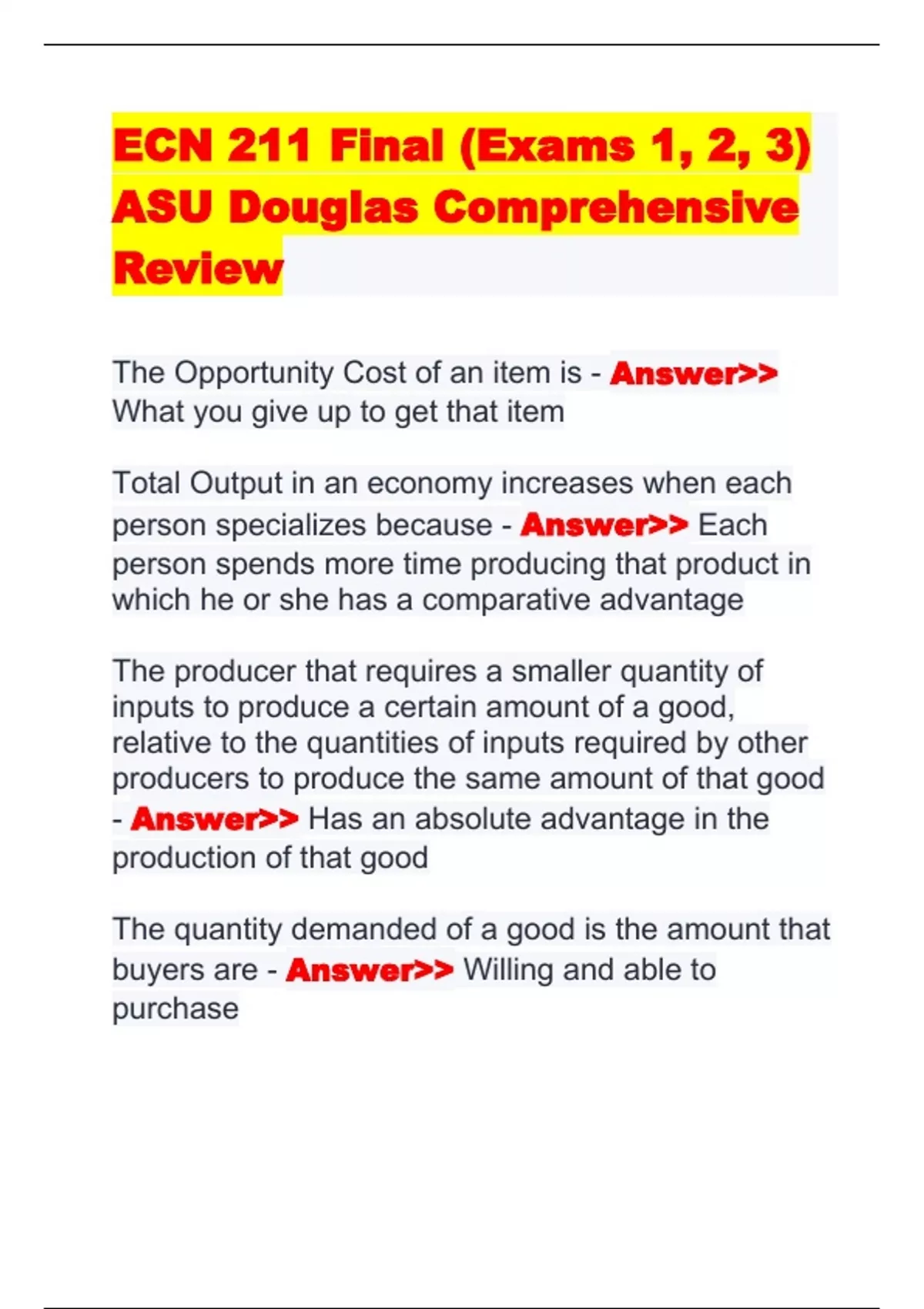 ECN 211 Final (Exams 1, 2, 3) ASU Douglas Comprehensive Review