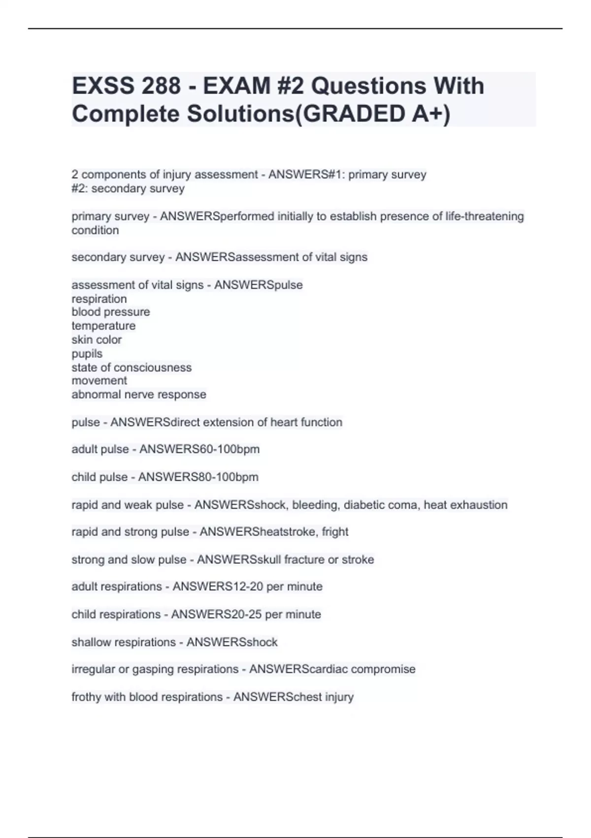 EXSS 288 - EXAM #2 Questions With Complete Solutions(GRADED A+)