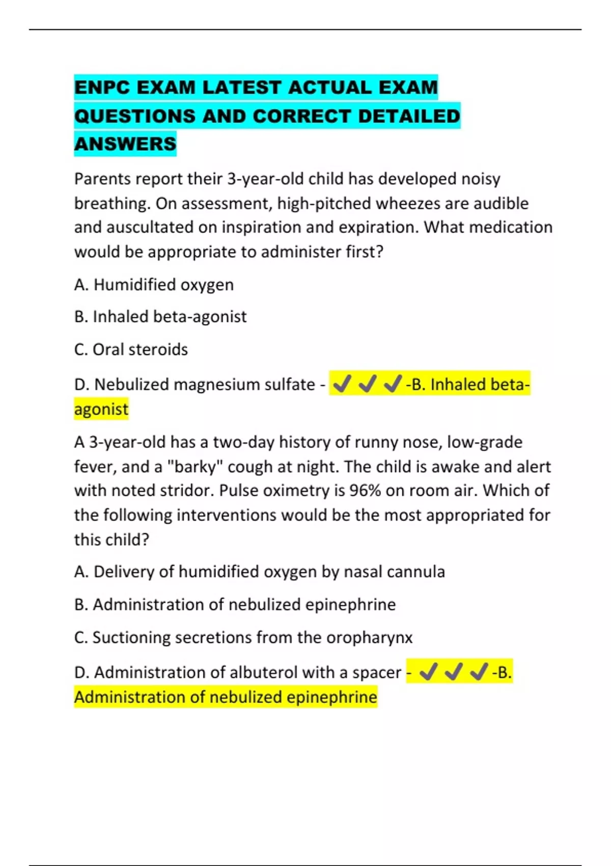 enpc exam latest actual exam questions and correct