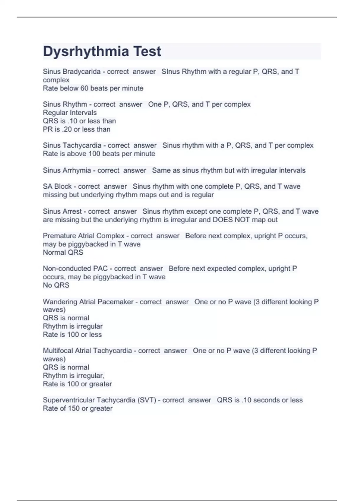 dysrhythmia test questions and answers already cer