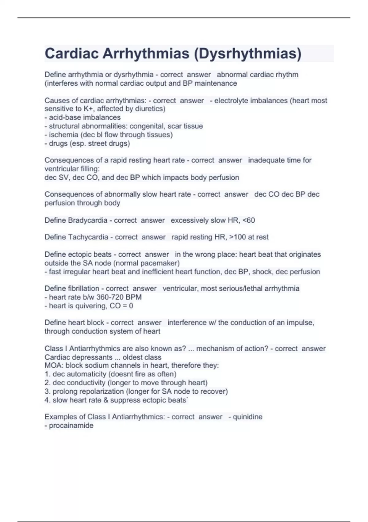 Cardiac Arrhythmias questions and answers published 2024