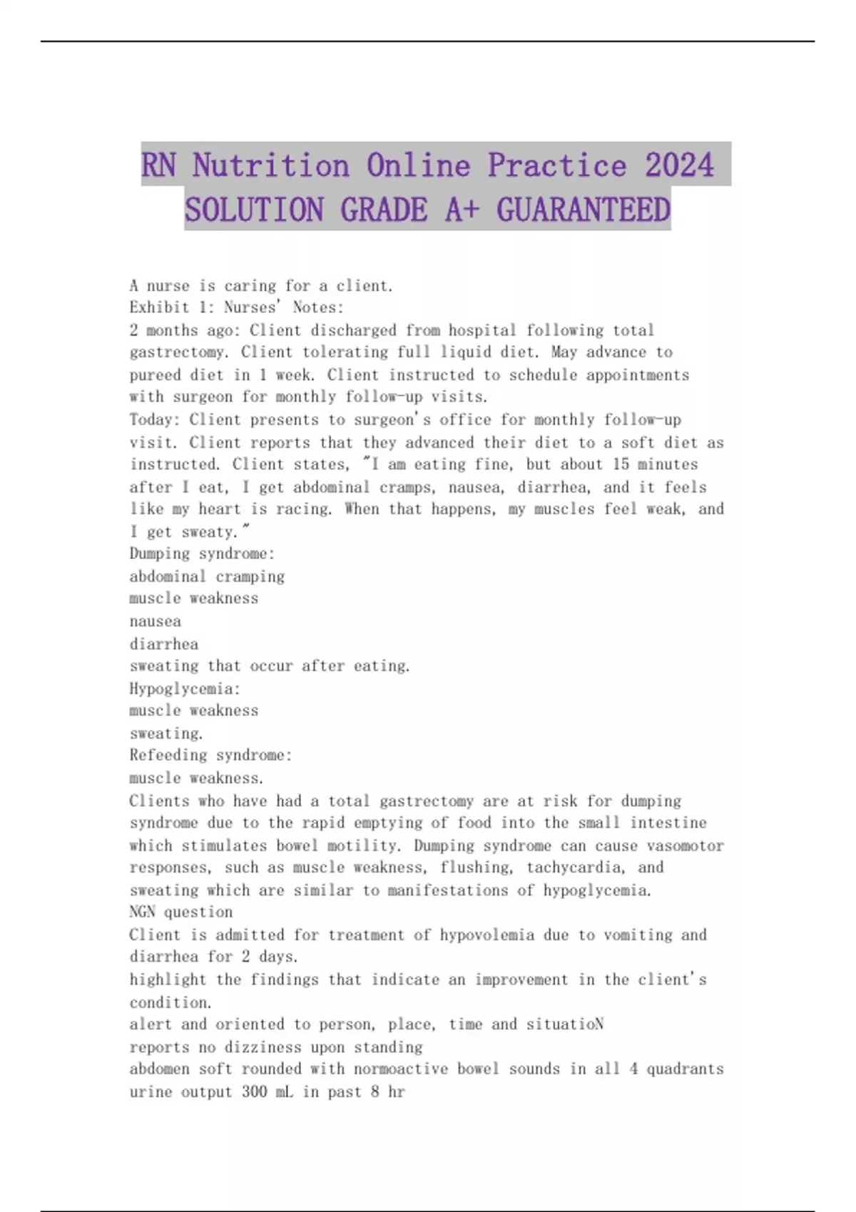 RN Nutrition Online Practice 2024 SOLUTION GRADE A+ GUARANTEED