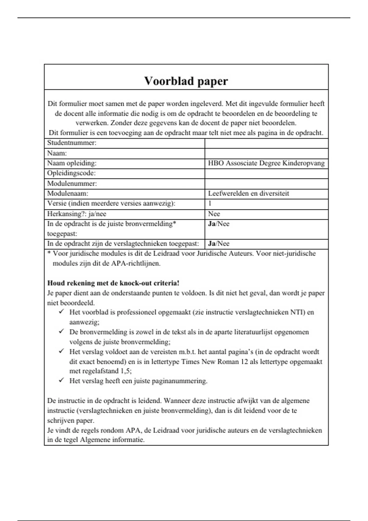 Kader: Eindopdracht module Leefwerelden en Diversiteit
